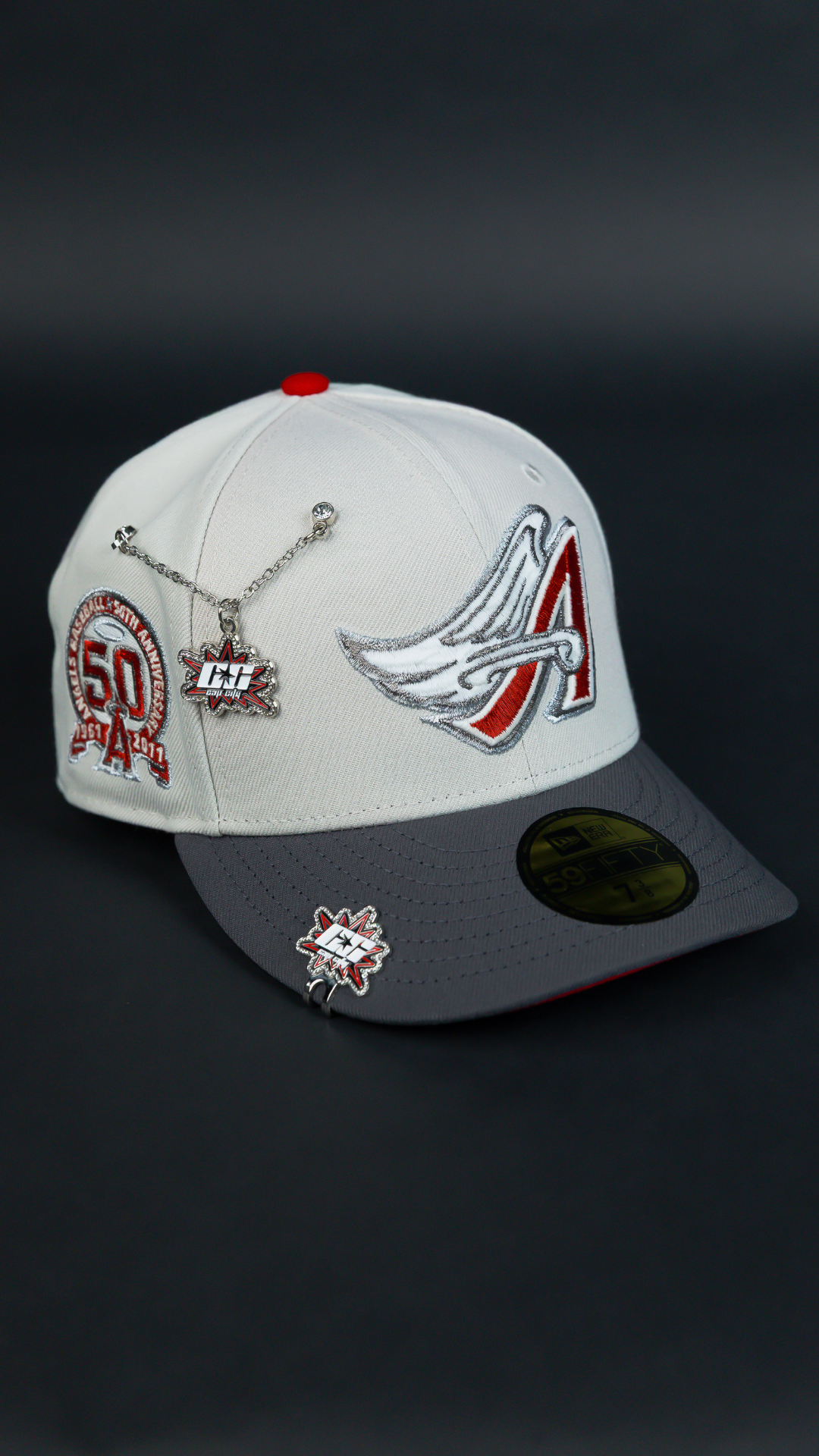 NEW ERA EXCLUSIVE 59FIFTY SMOKE GREY ANAHEIM ANGELS W/ 50TH ANNIVERSARY SIDE PATCH
