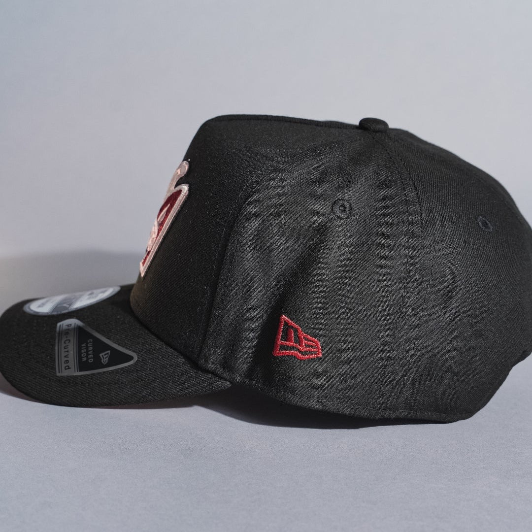 NEW ERA 9FIFTY A-FRAME BLACK ANAHEIM ANGELS SNAPBACK W/ 50TH ANNIVERSARY SIDE PATCH