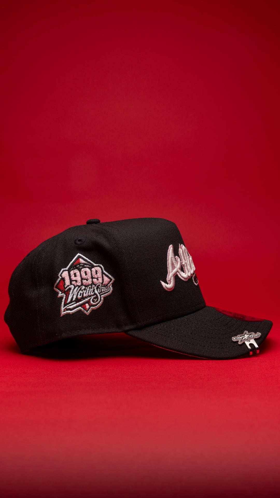 NEW ERA 9FIFTY A-FRAME BLACK ATLANTA BRAVES SCRIPT SNAPBACK W/ 1999 WORLD SERIES SIDE PATCH