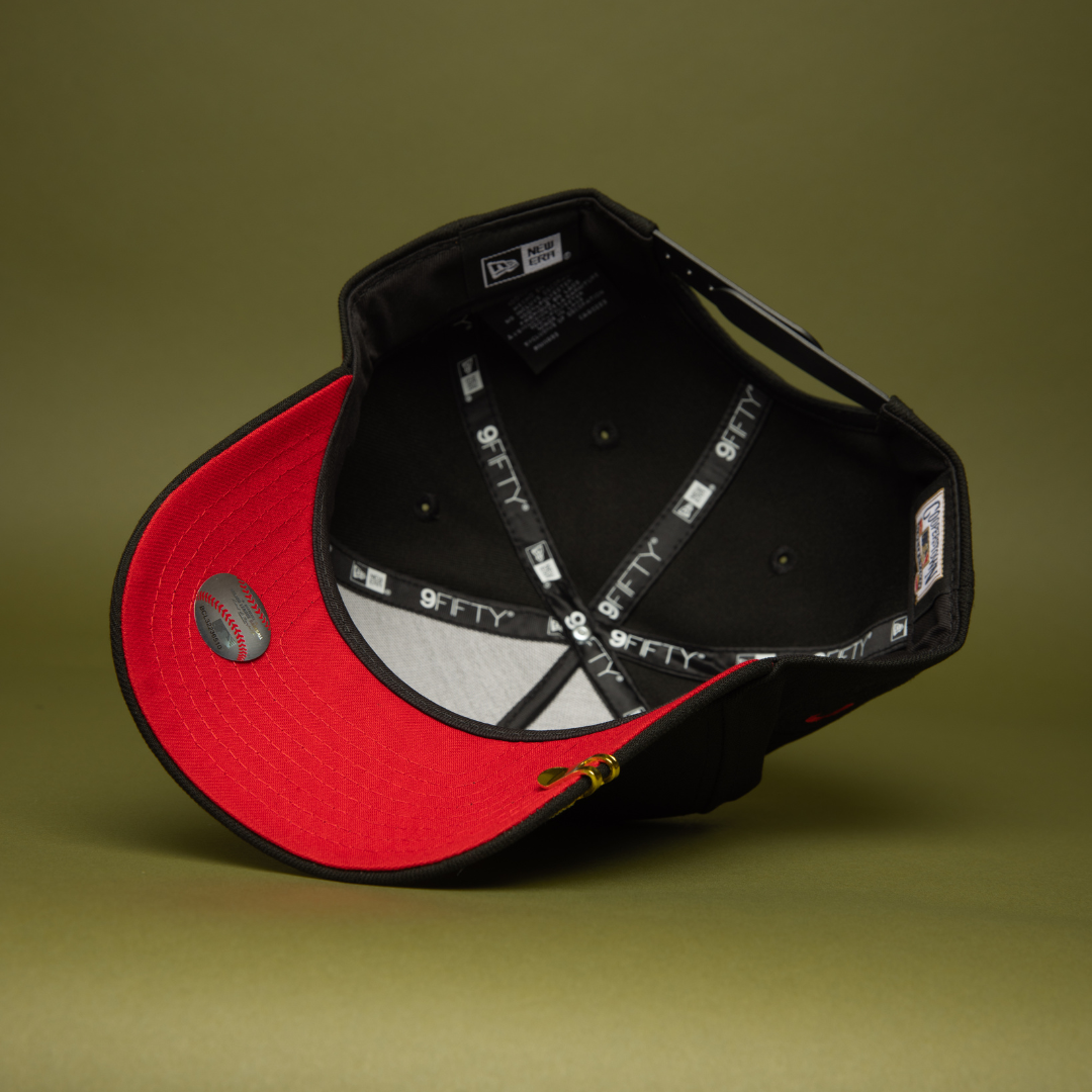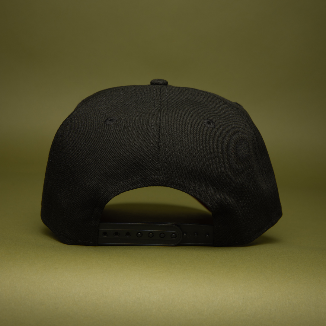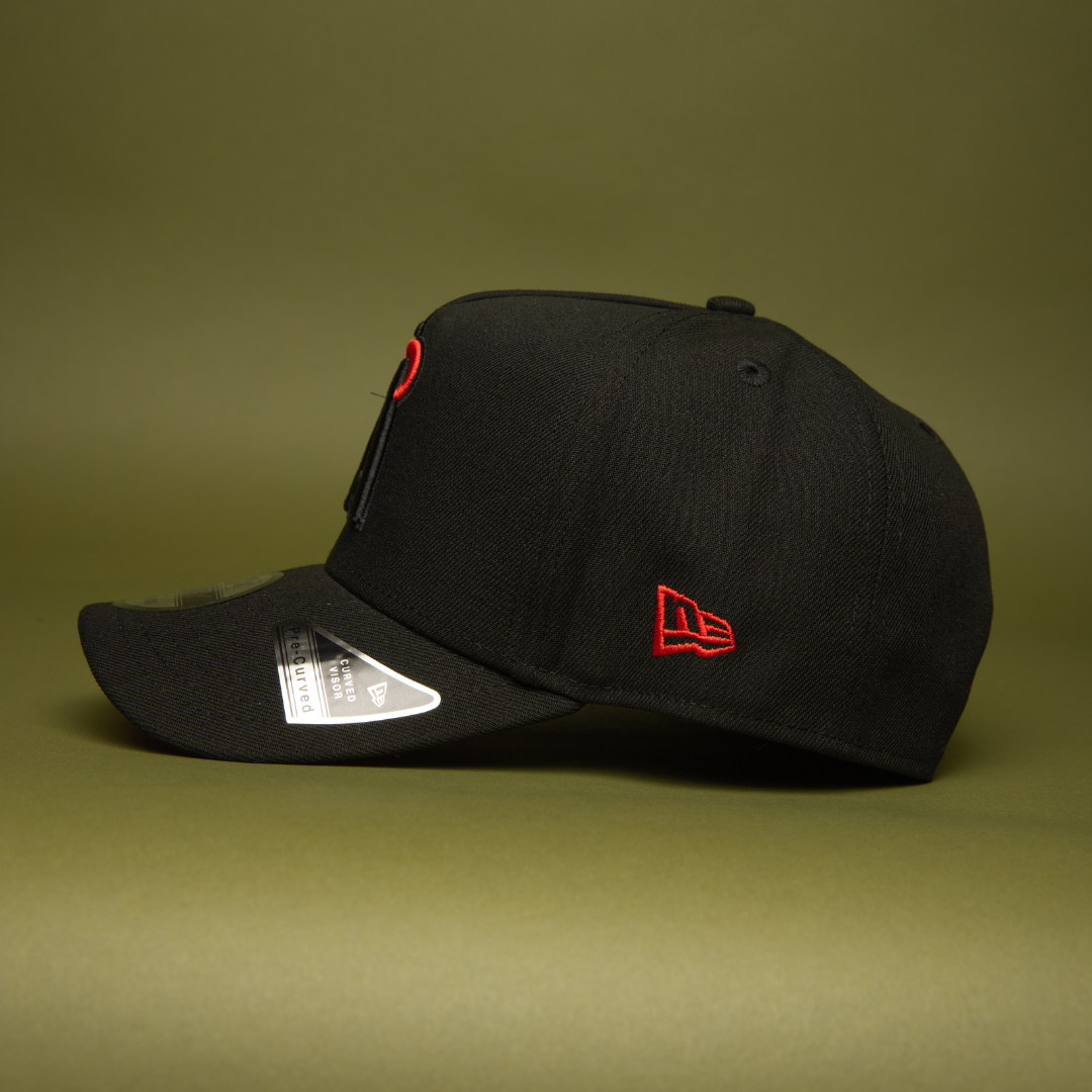 NEW ERA 9FIFTY A-FRAME BLACKED OUT ANAHEIM ANGELS SNAPBACK W/ 25TH ANNIVERSARY SIDE PATCH