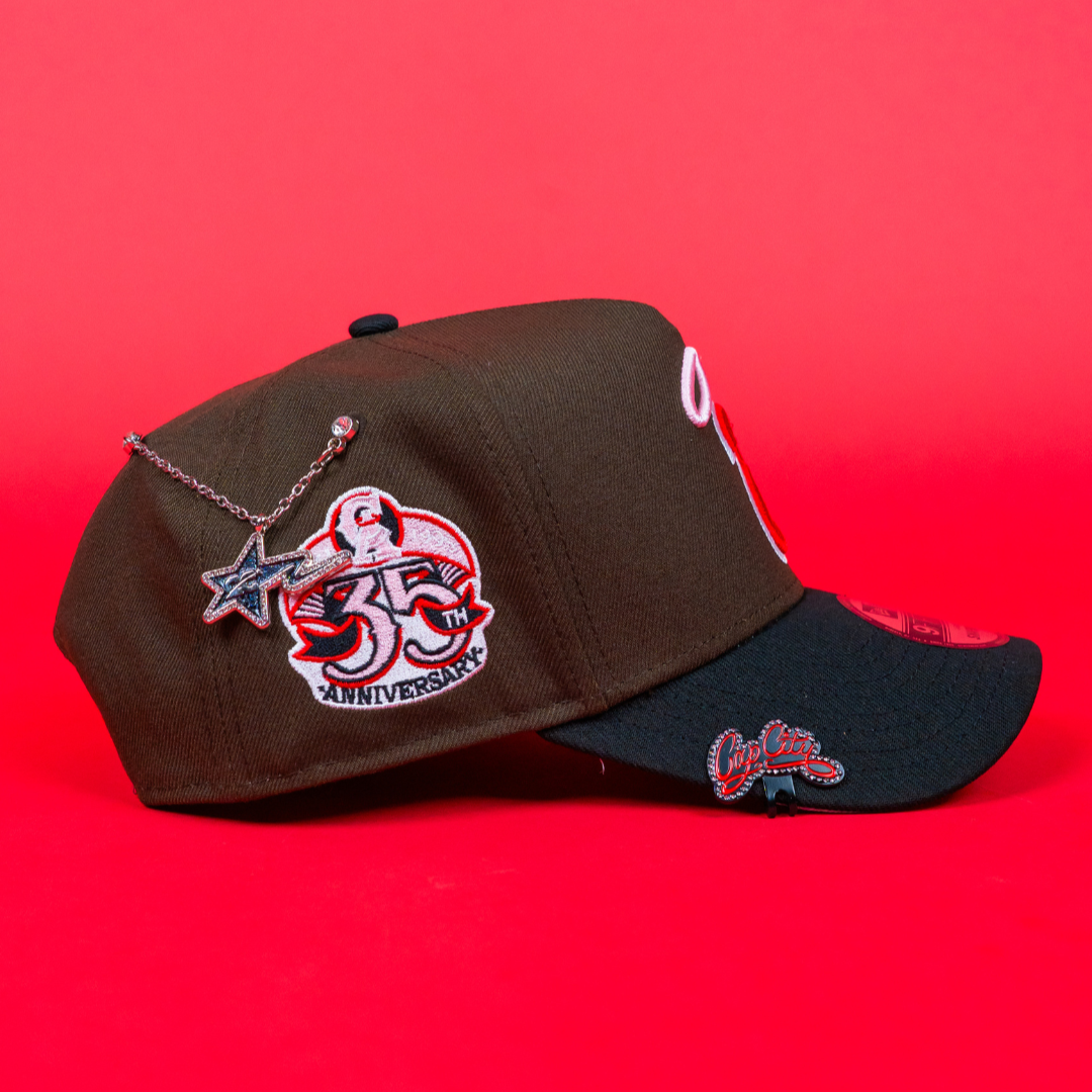 NEW ERA 9FIFTY A-FRAME BROWN/ BLACK ANAHEIM ANGELS SNAPBACK W/ 35TH ANNIVERSARY SIDE PATCH