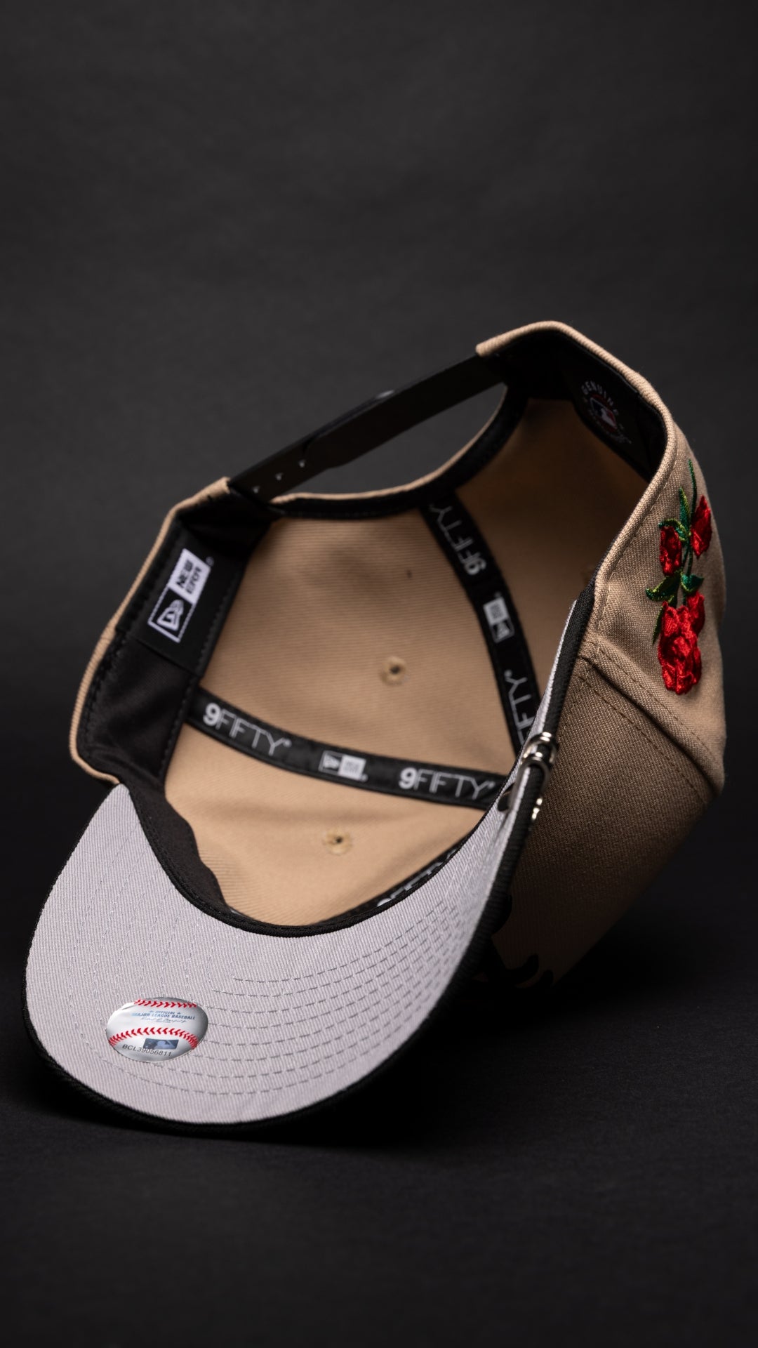 NEW ERA 9FIFTY A-FRAME CAMEL BROWN OAKLAND ATHLETICS W/ RED ROSES SIDE PATCH