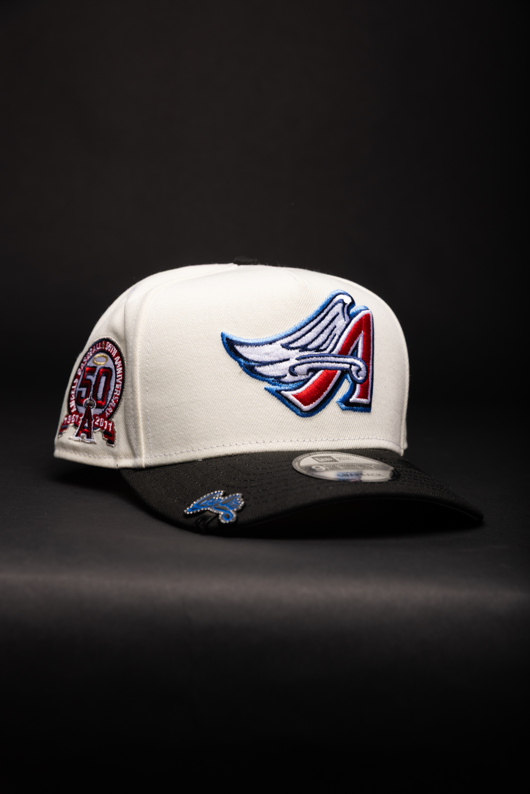NEW ERA 9FIFTY A-FRAME CHROME/BLACK ANAHEIM ANGELS W/ 50TH ANNIVERSARY SIDE PATCH