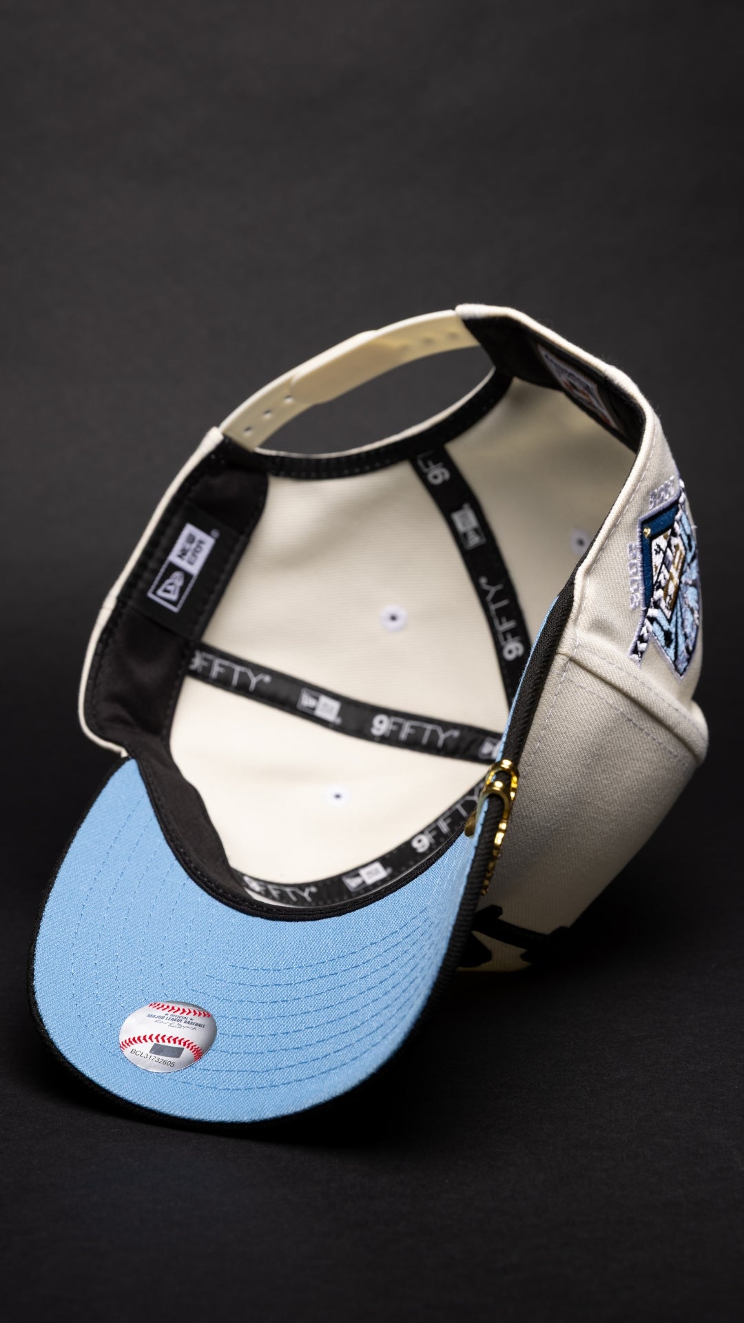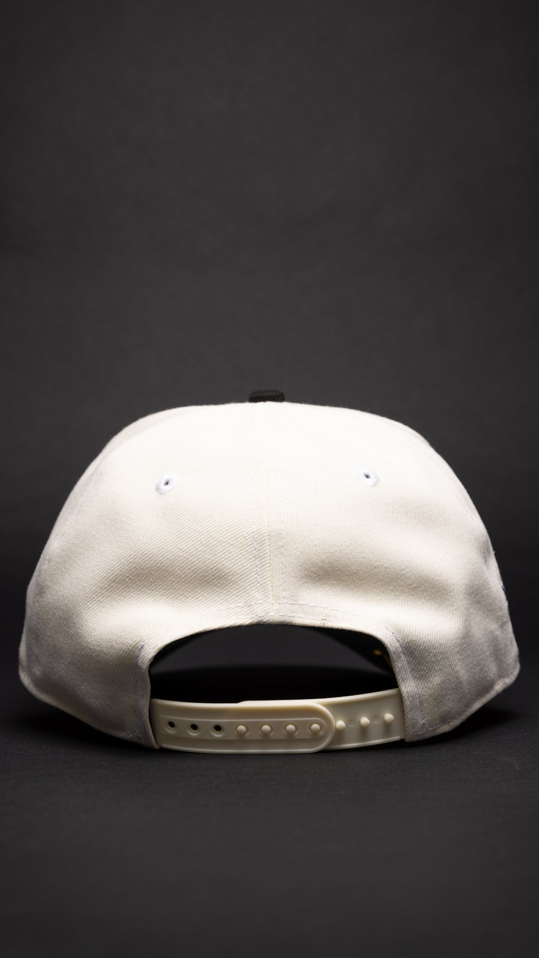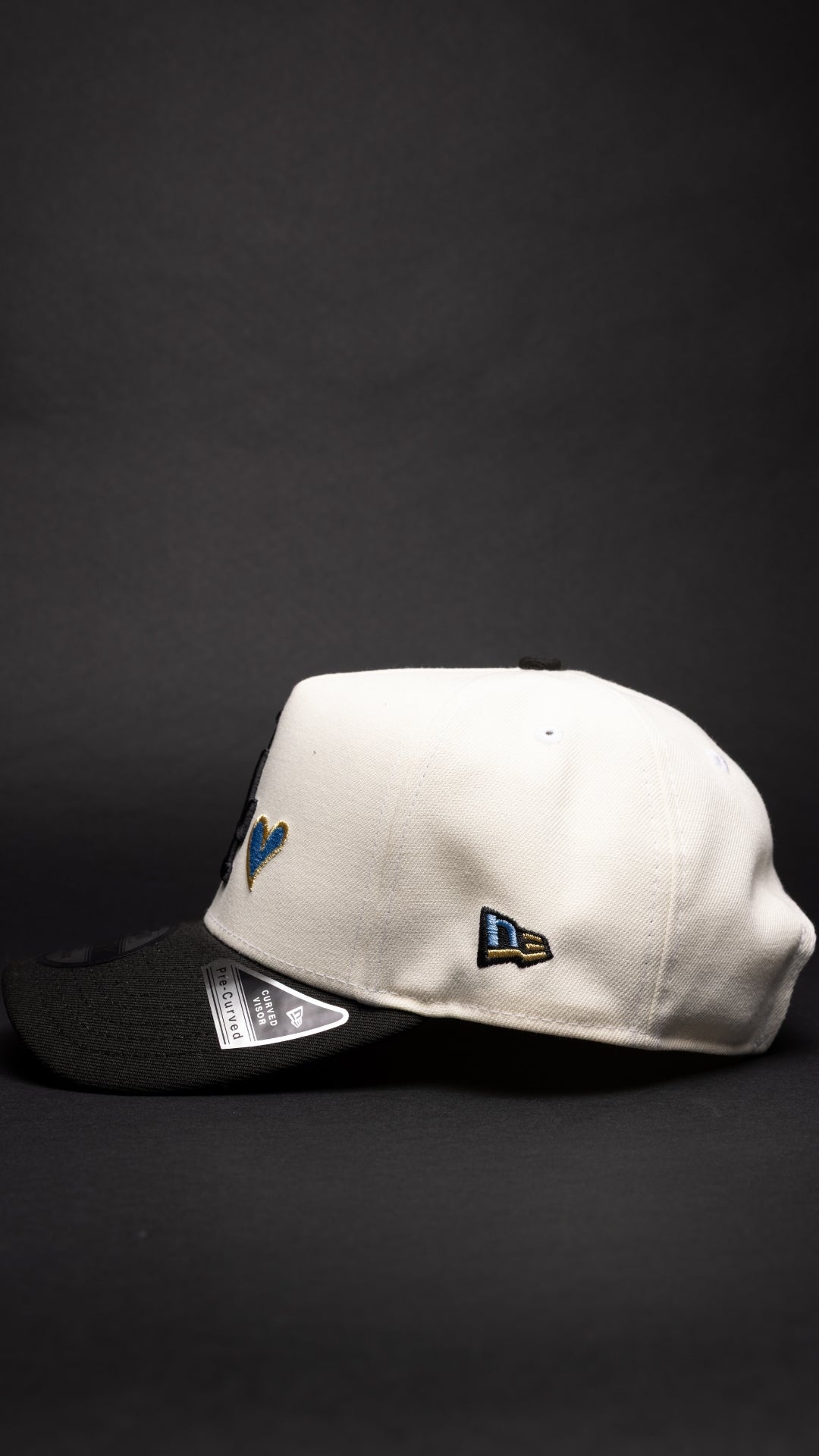 NEW ERA 9FIFTY A-FRAME CHROME/BLACK LOS ANGELES DODGERS SNAPBACK W/ HEART + 50TH ANNIVERSARY SIDE PATCH