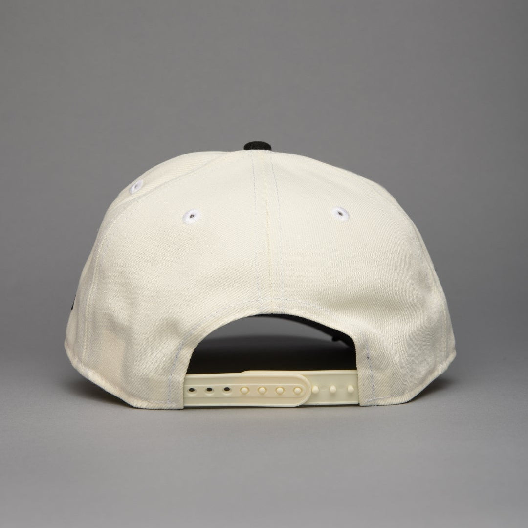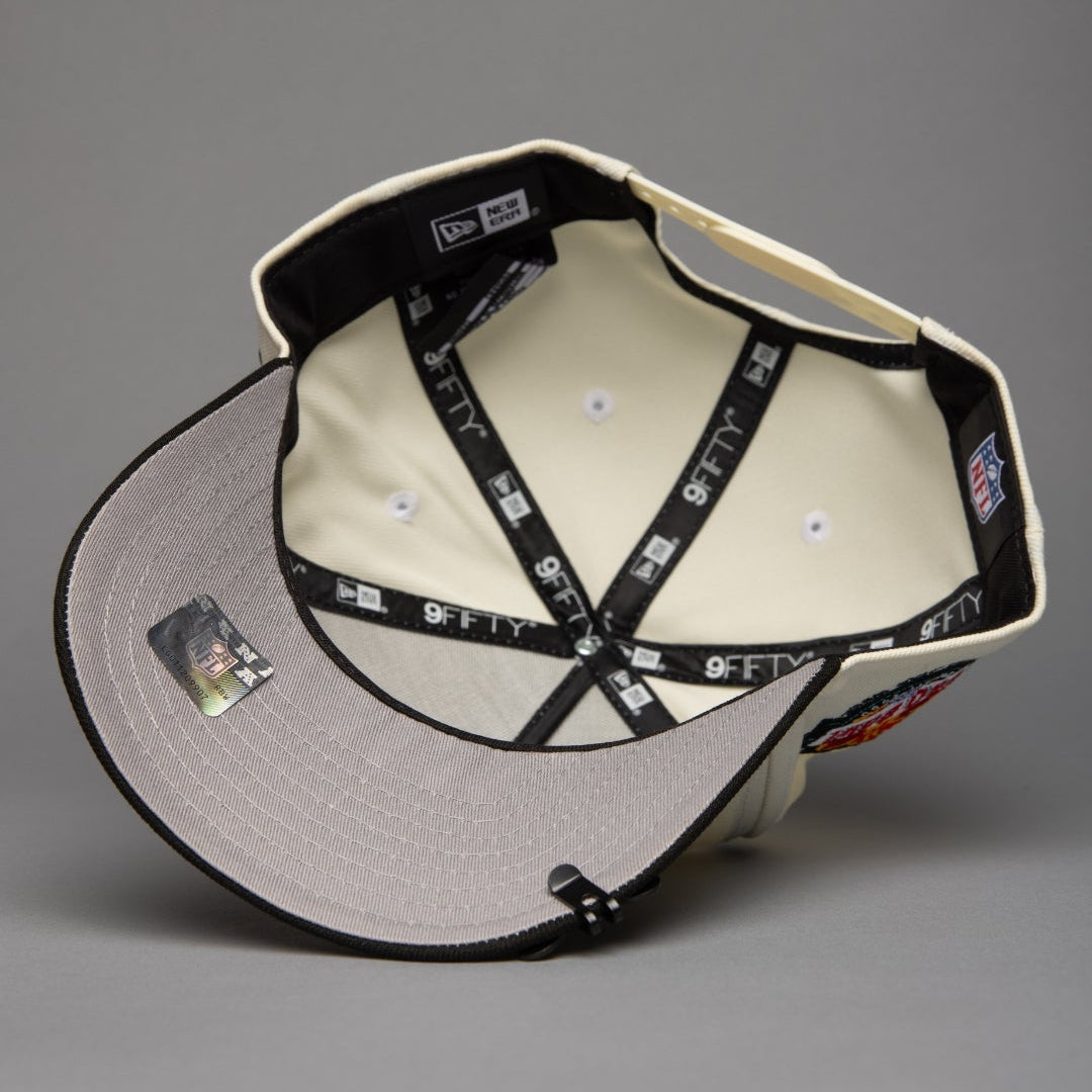 NEW ERA 9FIFTY A-FRAME CHROME/BLACK LOS ANGELES RAMS SCRIPT SNAPBACK W/ PRO BOWL SIDE PATCH