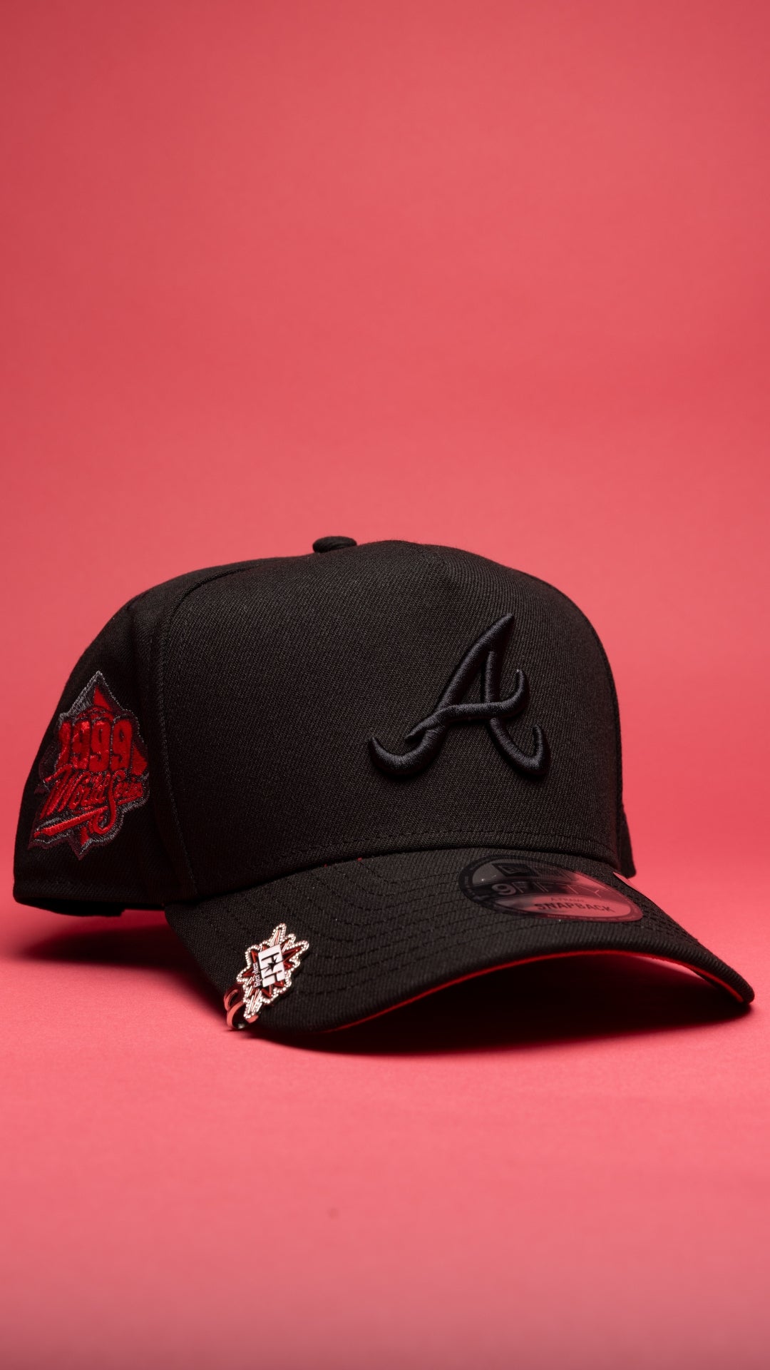 NEW ERA 9FIFTY A-FRAME BLACKED OUT ATLANTA BRAVES SNAPBACK W/ 1999 WORLD SERIES SIDE PATCH