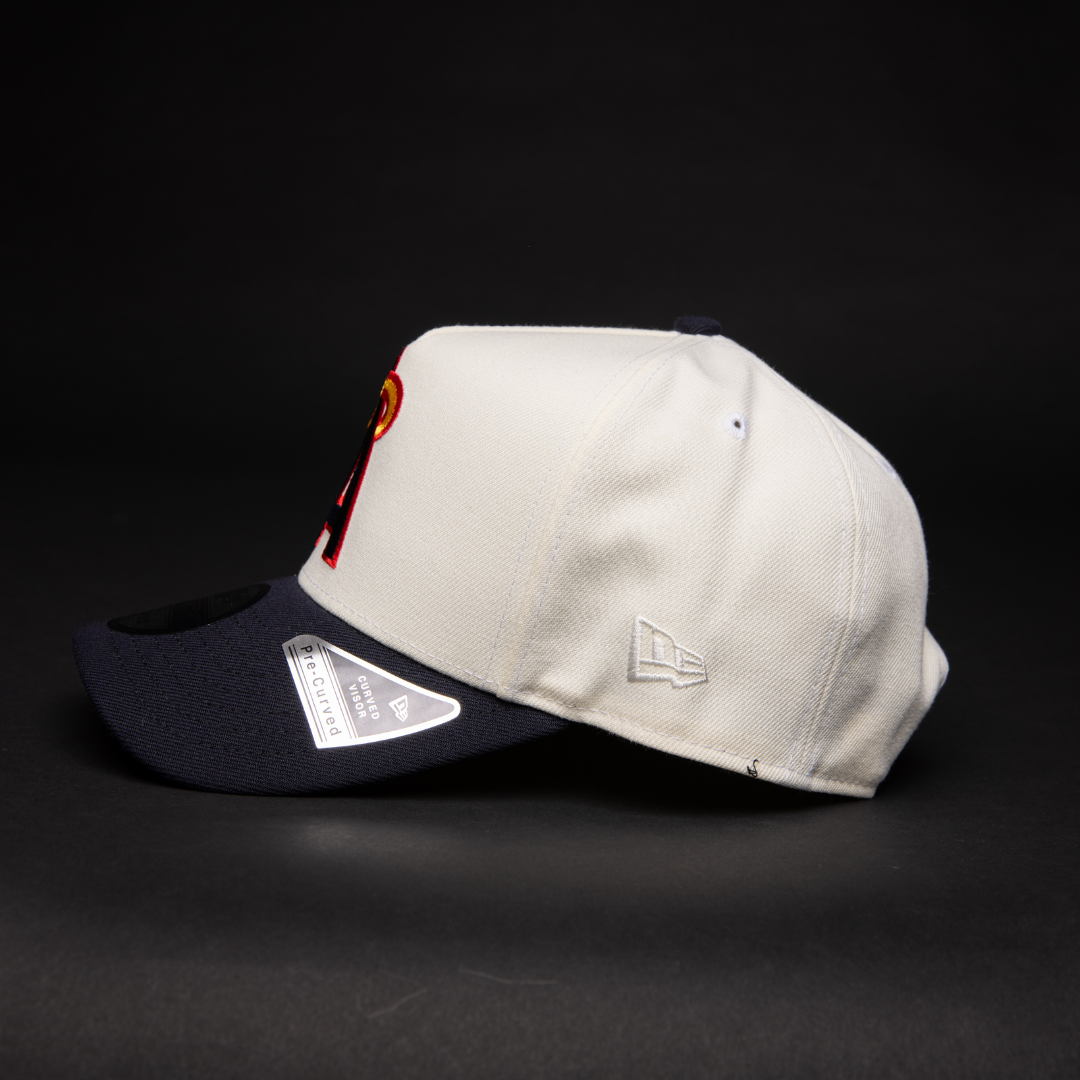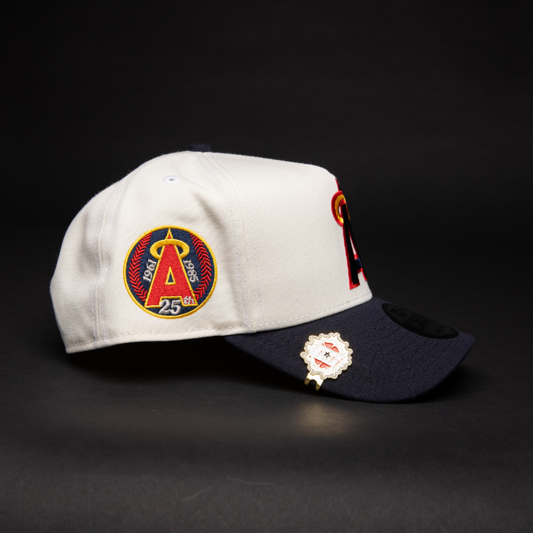 NEW ERA 9FIFTY A-FRAME CHROME/ NAVY ANAHEIM ANGELS SNAPBACK W/ 25TH ANNIVERSARY SIDE PATCH