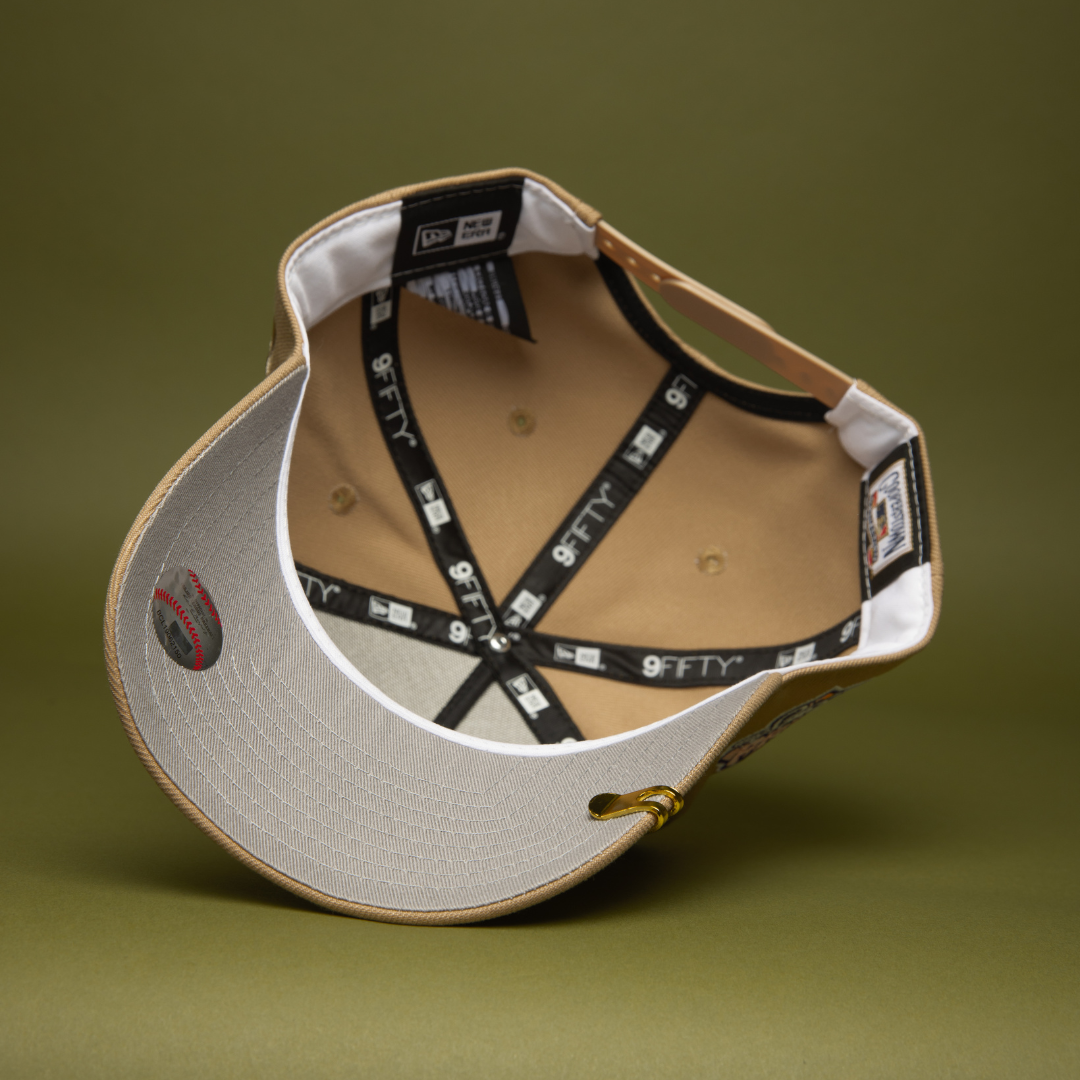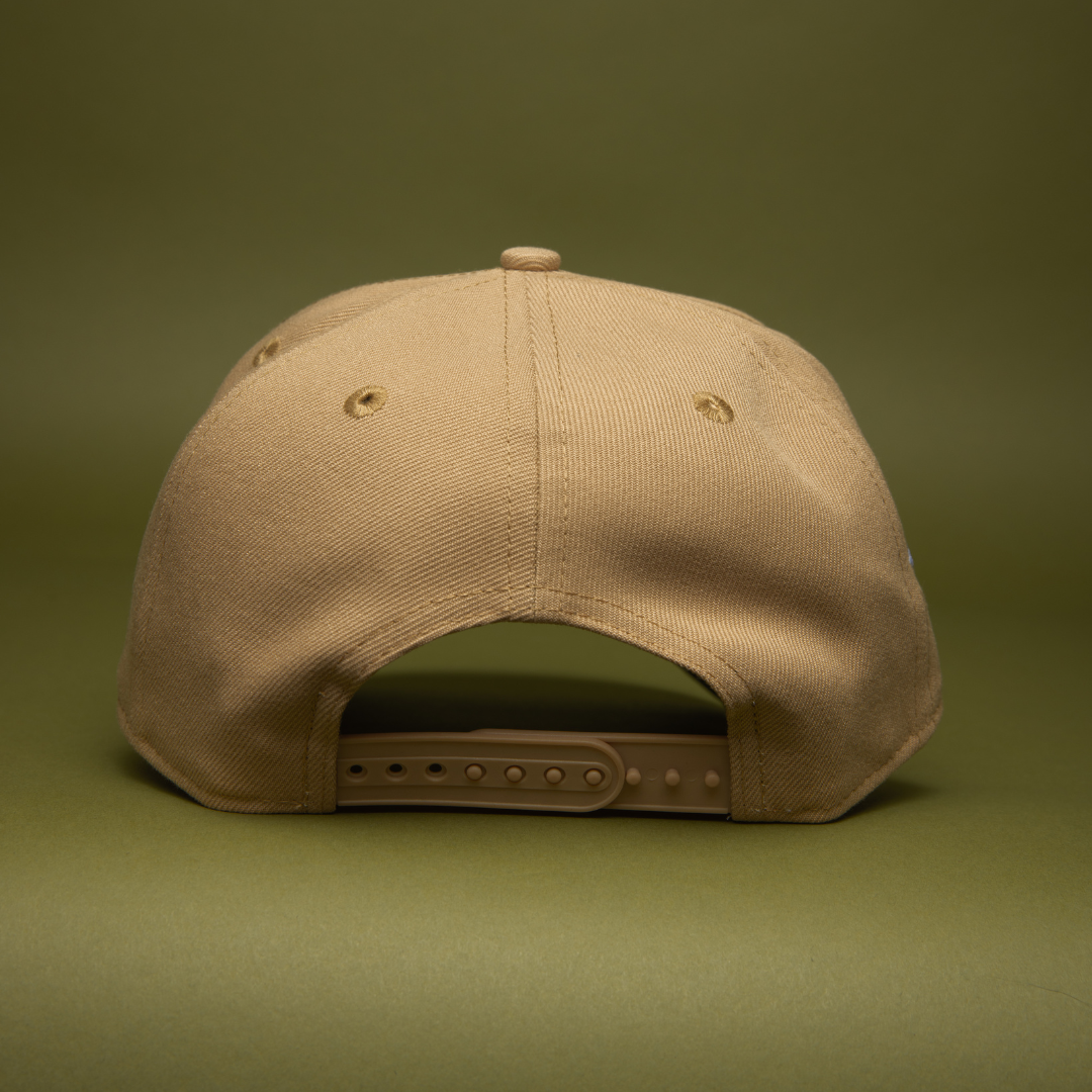 NEW ERA 9FIFTY A-FRAME LIGHT KHAKI NEW YORK YANKEES SNAPBACK W/ 1999 WORLD SERIES SIDE PATCH