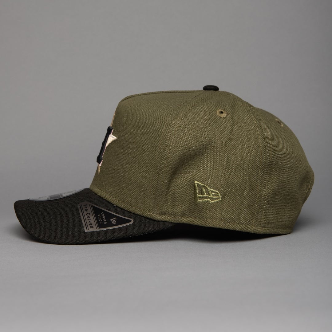 NEW ERA 9FIFTY A-FRAME OLIVE/BLACK HOUSTON ASTROS W/ 45TH ANNIVERSARY SIDE PATCH