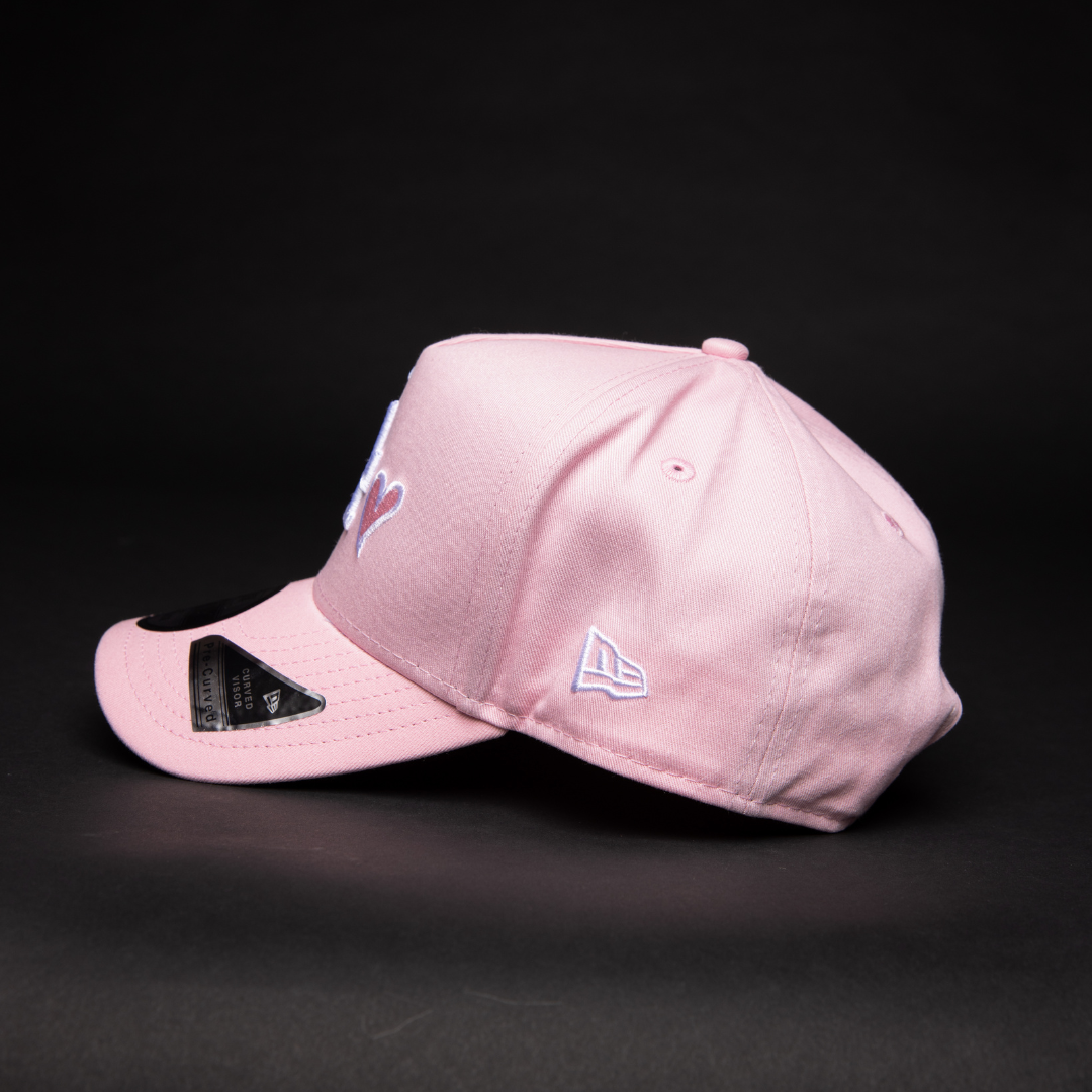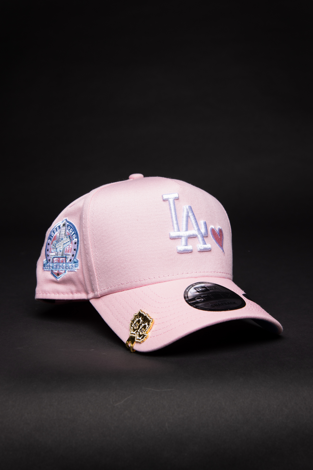 NEW ERA 9FIFTY A-FRAME PINK LOS ANGELES DODGERS SNAPBACK W/ PINK HEART + 60TH ANNIVERSARY SIDE PATCH