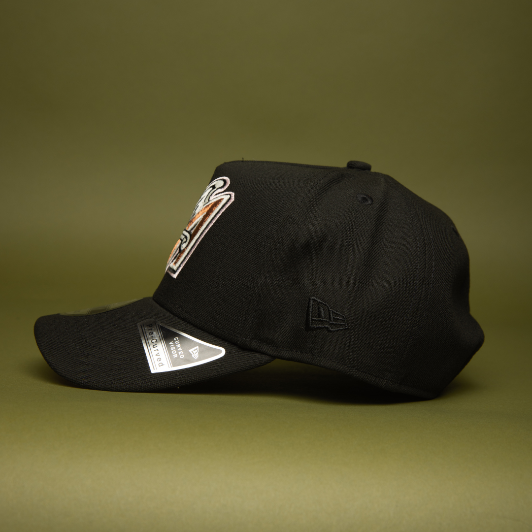 NEW ERA 9FIFTY A-FRAME BLACK ANAHEIM ANGELS SNAPBACK W/ 50TH ANNIVERSARY SIDE PATCH