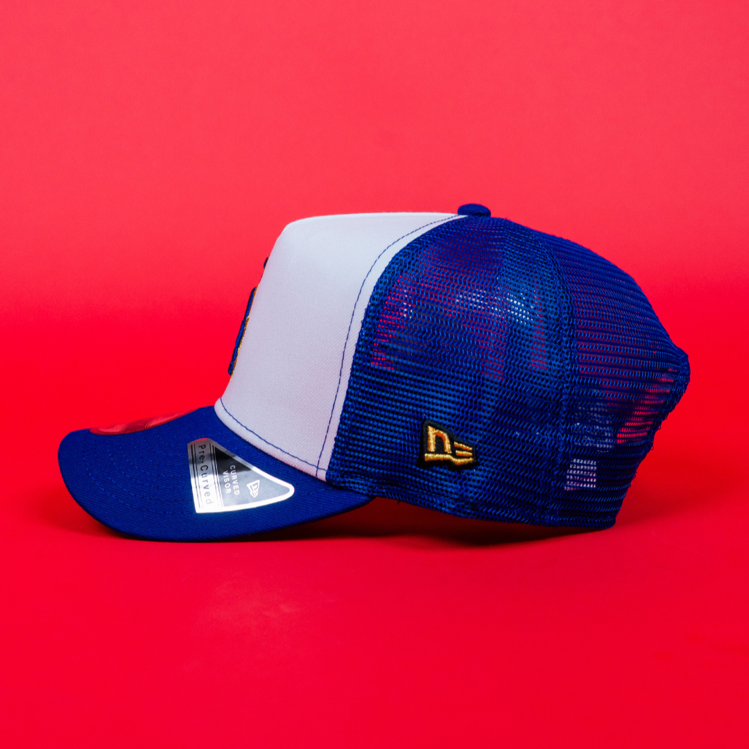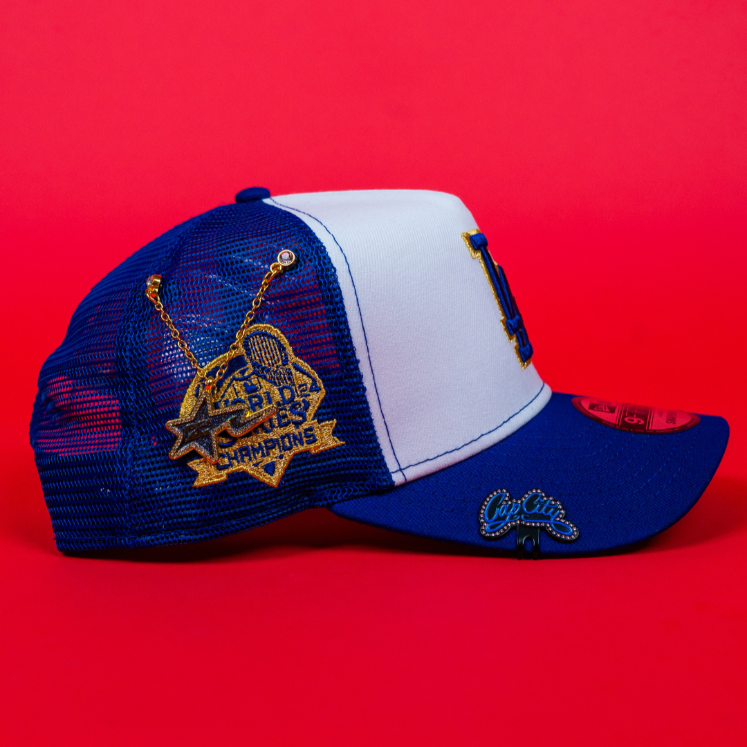 NEW ERA 9FIFTY A-FRAME WHITE/ BLUE LOS ANGELES DODGERS MESHBACK W/ 2024 WORLD SERIES CHAMPIONS SIDE PATCH