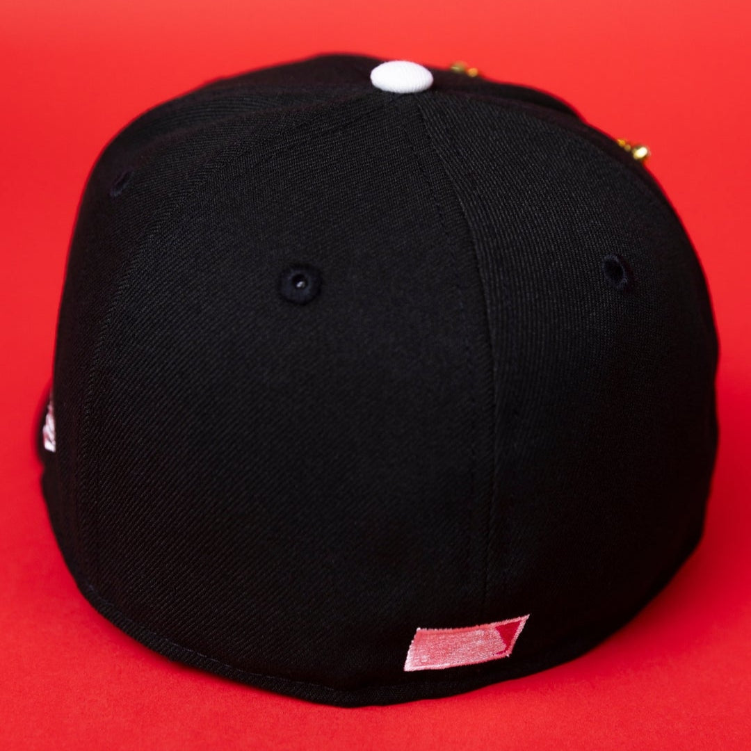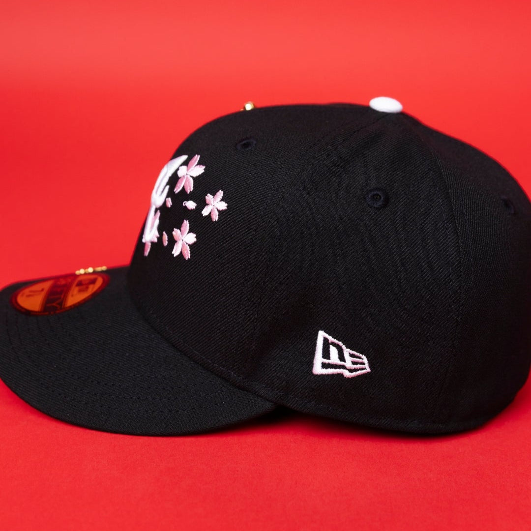 NEW ERA EXCLUSIVE 59FIFTY BLACK ATLANTA BRAVES W/ FLORAL EMBROIDERY + 1999 WORLD SERIES SIDE PATCH