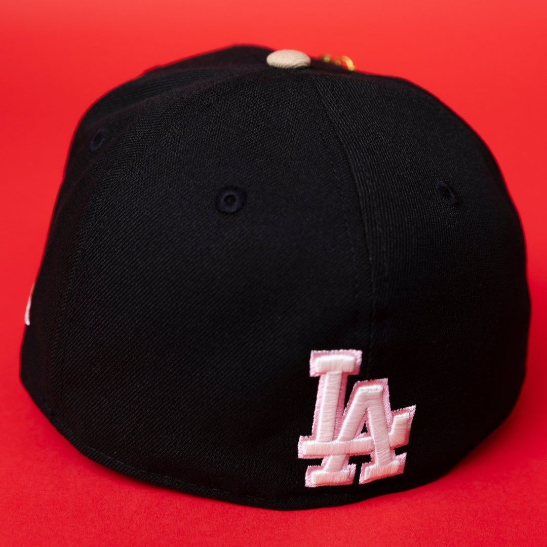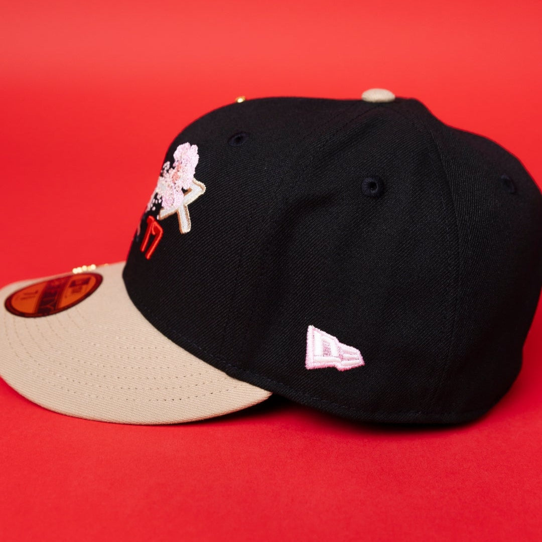 NEW ERA EXCLUSIVE 59FIFTY BLACK/ BEIGE LOS ANGELES DODGERS W/ JAPANESE PINK BLOSSOM + 'SHOHEI OHTANI" SIDE PATCH