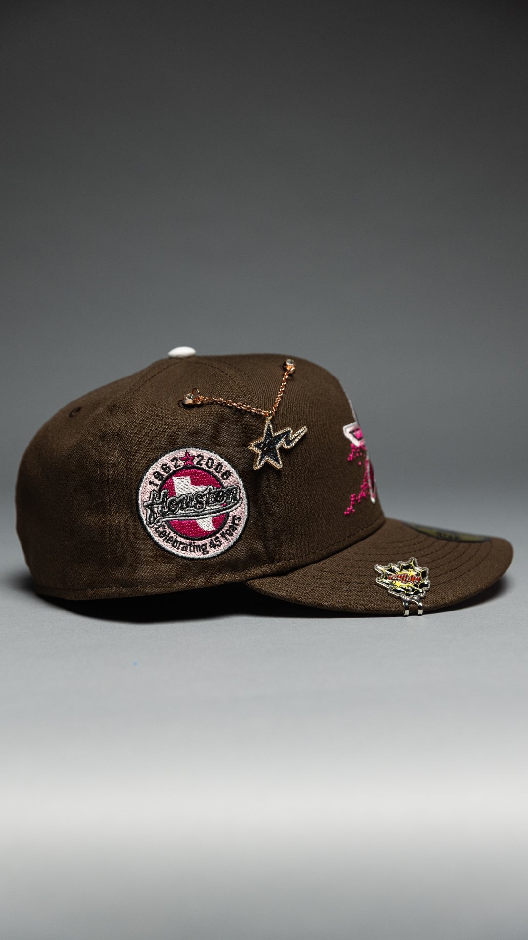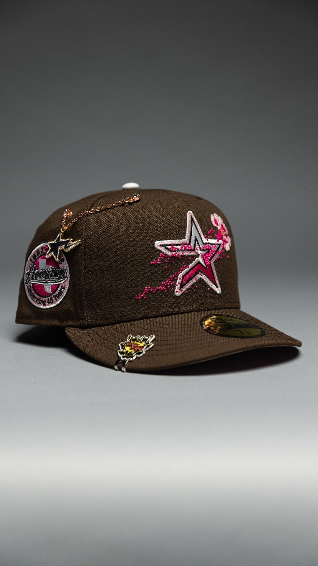 NEW ERA EXCLUSIVE 59FIFTY BROWN HOUSTON ASTROS W/ FLORAL LOGO + CELEBRATING 45 YEARS SIDE PATCH