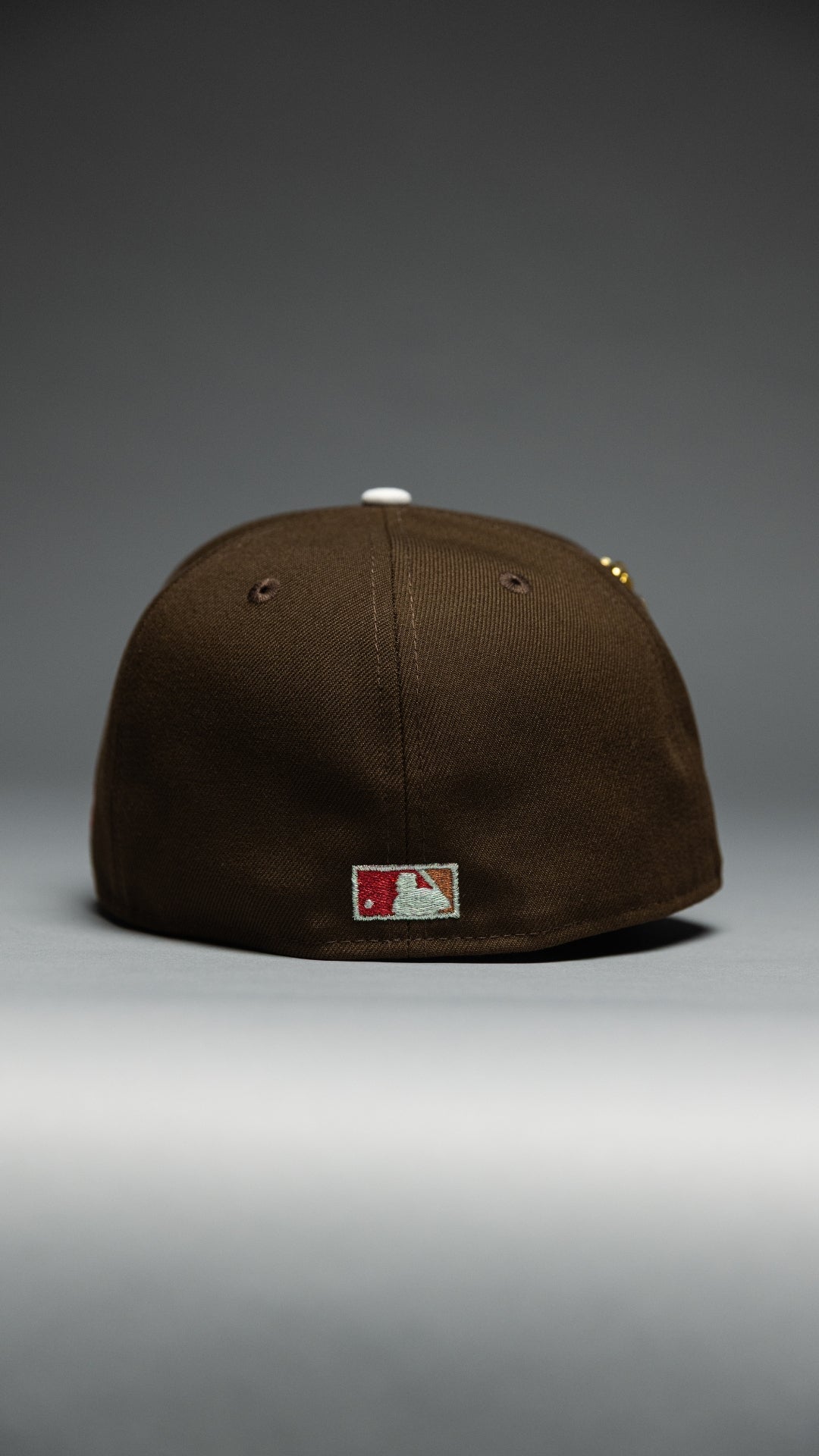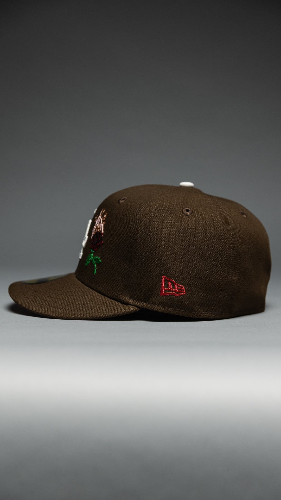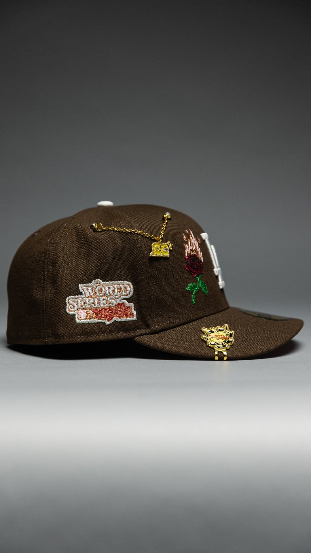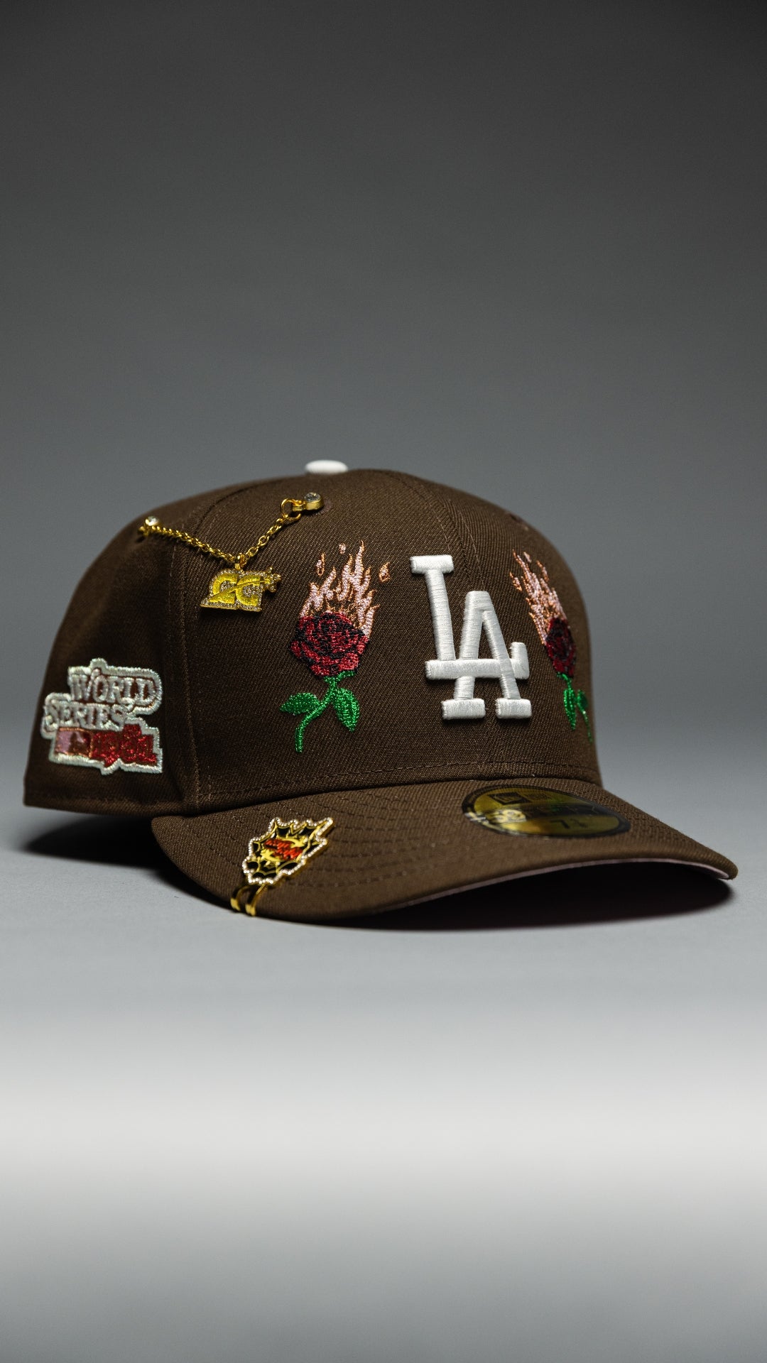 NEW ERA EXCLUSIVE 59FIFTY BROWN LOS ANGELES DODGERS W/ BURNT ROSES + 1981 WORLD SERIES SIDE PATCH