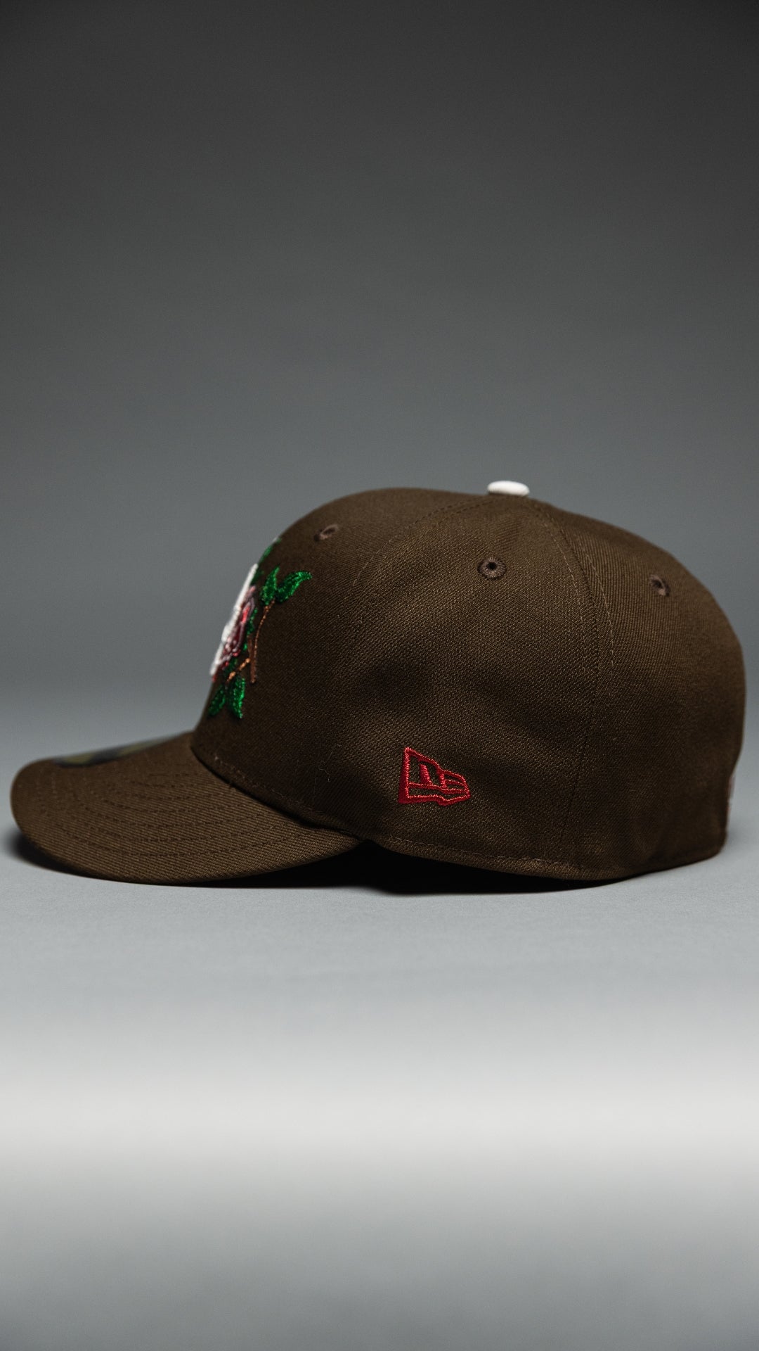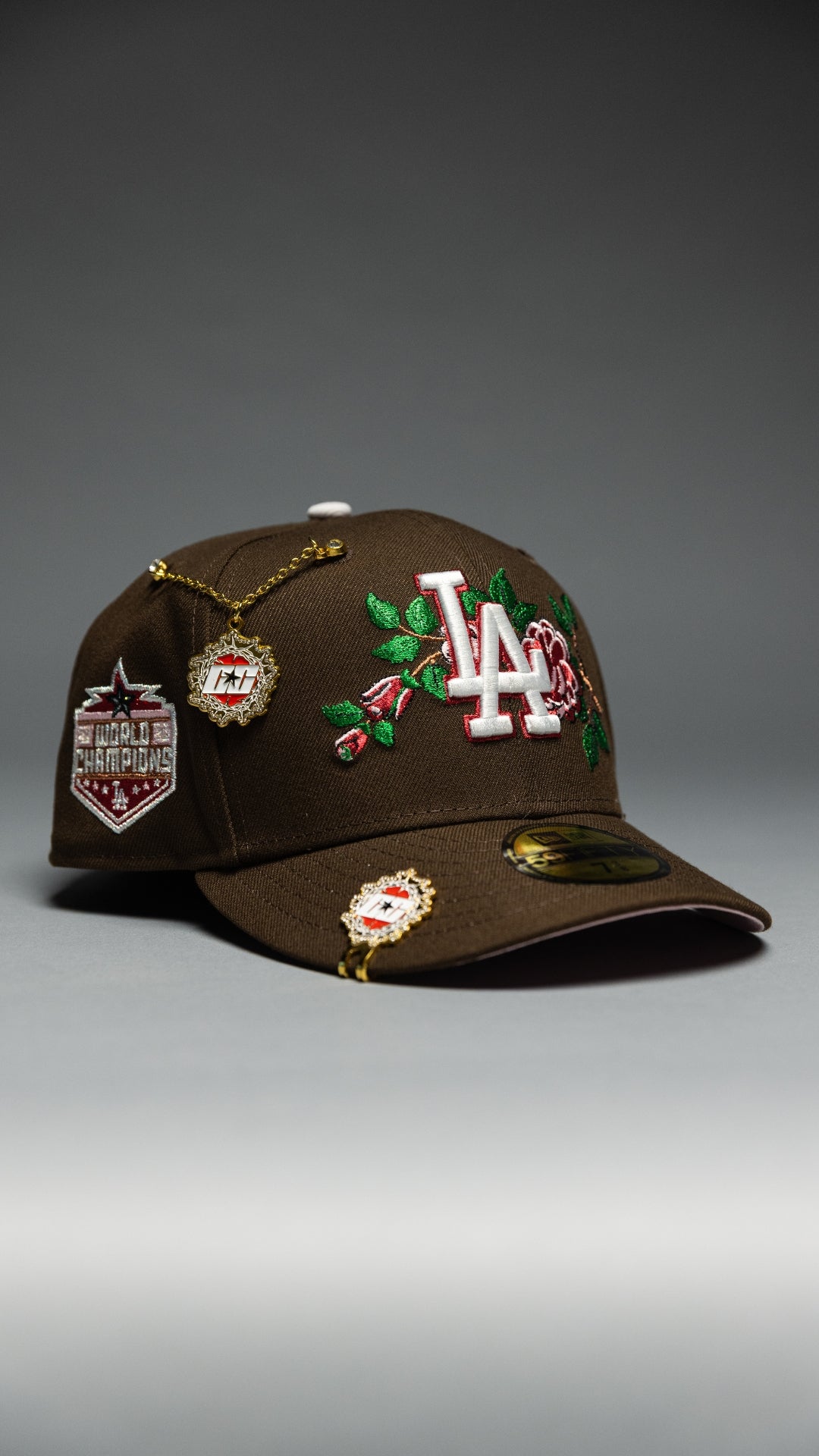 NEW ERA EXCLUSIVE 59FIFTY BROWN LOS ANGELES DODGERS W/ RED ROSE + WORLD SERIES CHAMPIONS SIDE PATCH