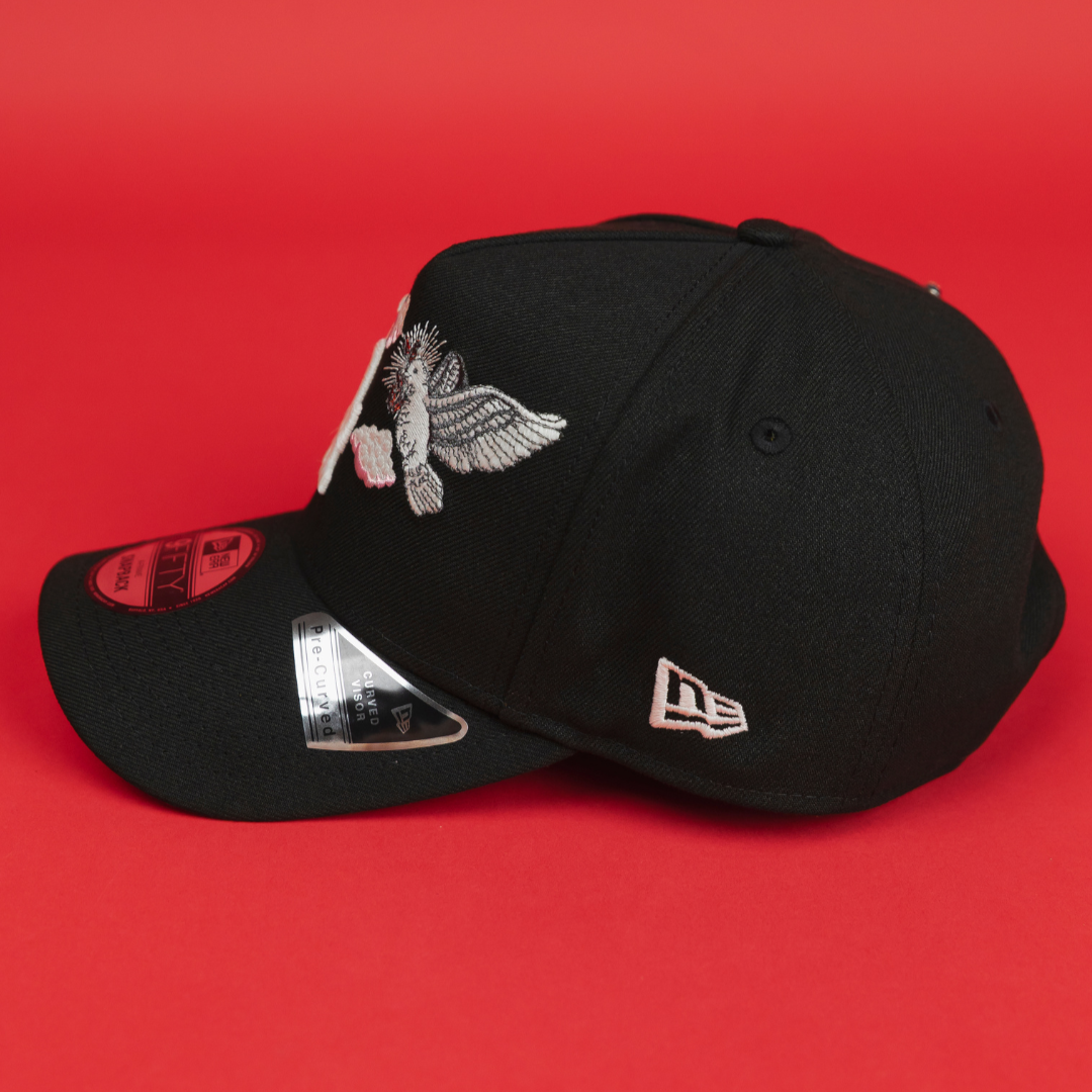 NEW ERA EXCLUSIVE 9FIFTY A-FRAME BLACK LOS ANGELES DODGERS "HEAVENLY CITY" W/ JAPANESE PINK BLOSSOM SIDE PATCH *FREE BLIP INCLUDED