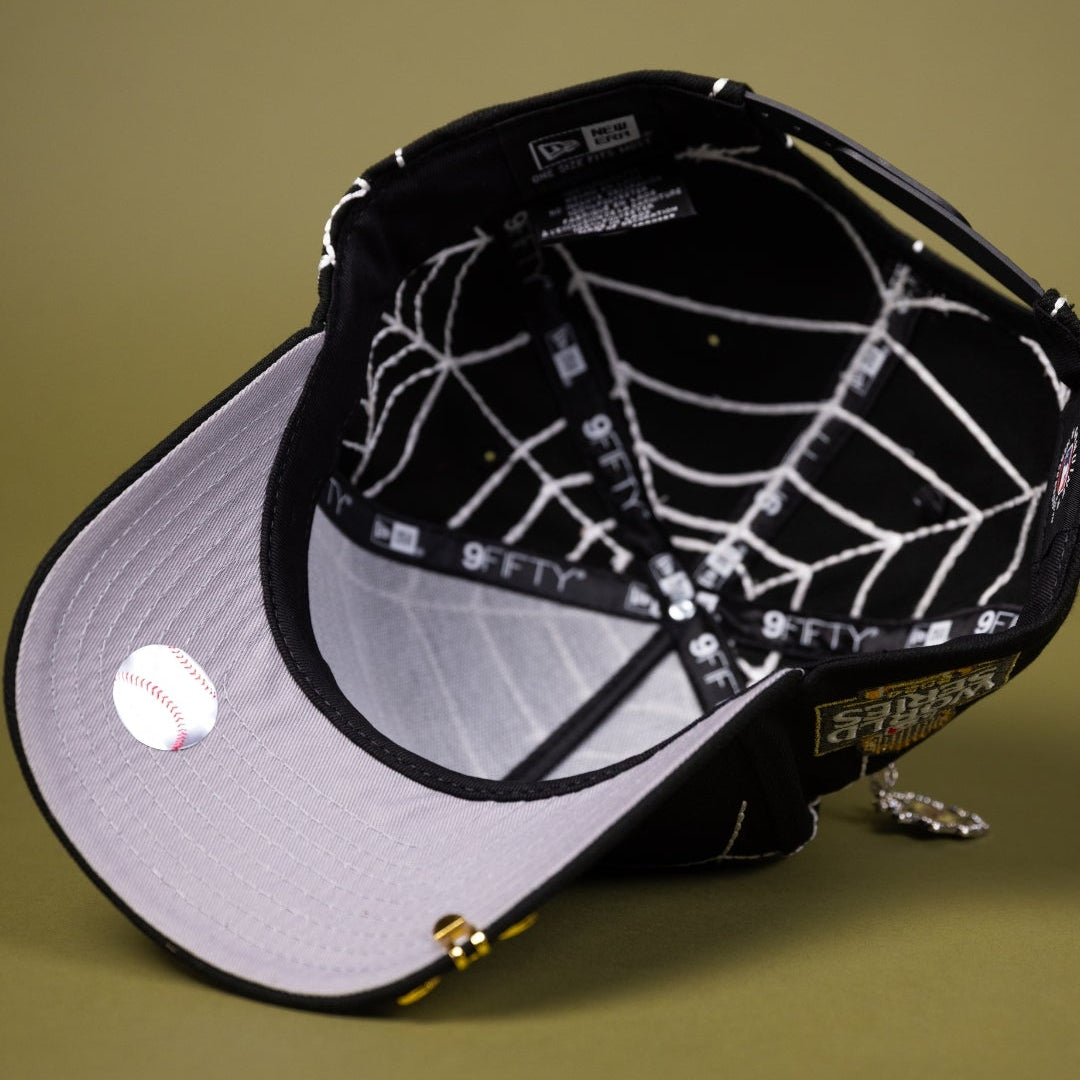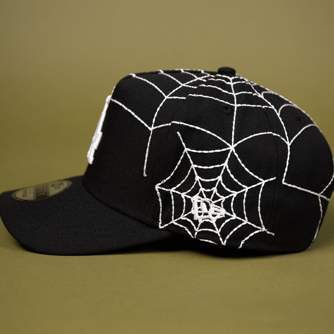 NEW ERA EXCLUSIVE 9FIFTY A-FRAME BLACK LOS ANGELES DODGERS SNAPBACK W/ SPIDER WEB + 2024 WORLD SERIES SIDE PATCH