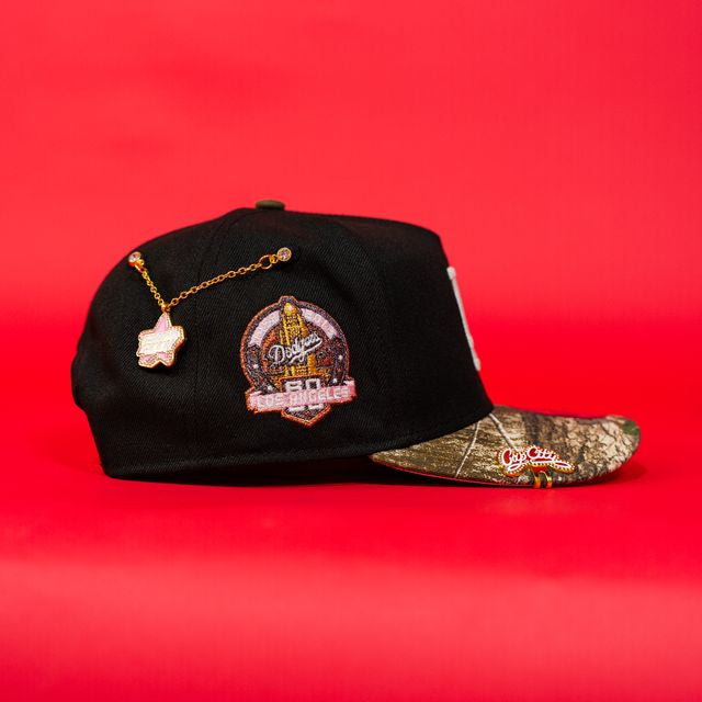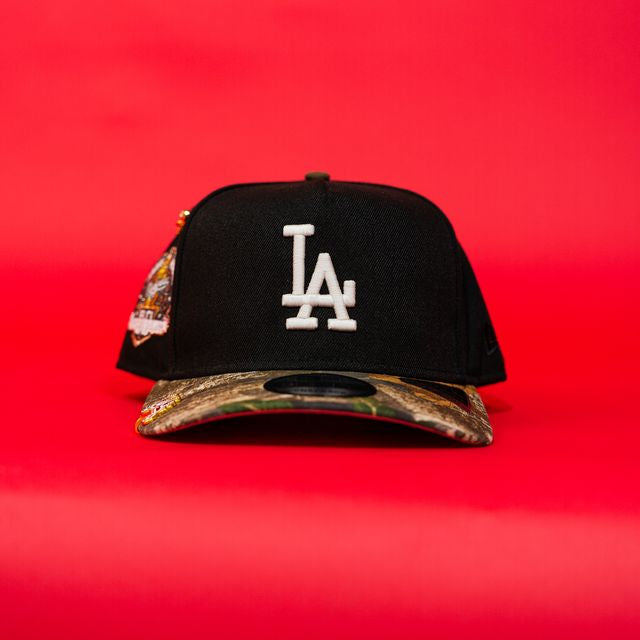 NEW ERA EXCLUSIVE 9FIFTY A-FRAME BLACK/ REALTREE LOS ANGELES DODGERS SNAPBACK W/ 60TH ANNIVERSARY SIDE PATCH