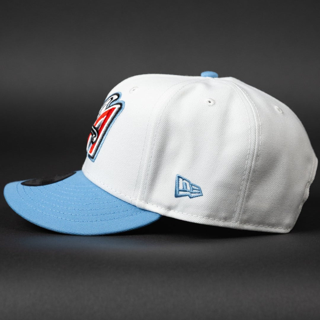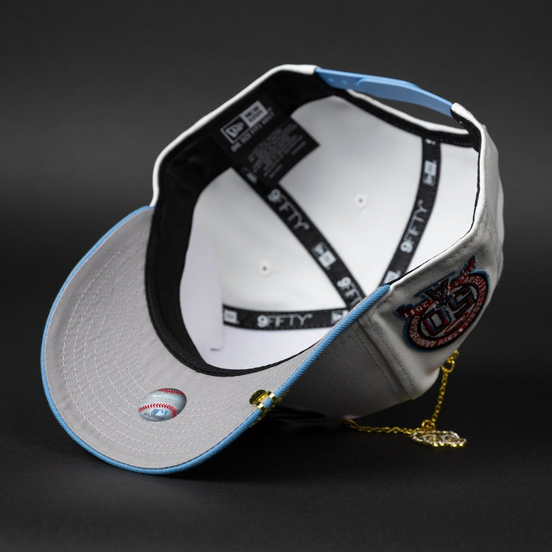 NEW ERA EXCLUSIVE 9FIFTY PEARL WHITE ANAHEIM ANGELS SNAPBACK W/ 50TH ANNIVERSARY SIDE PATCH
