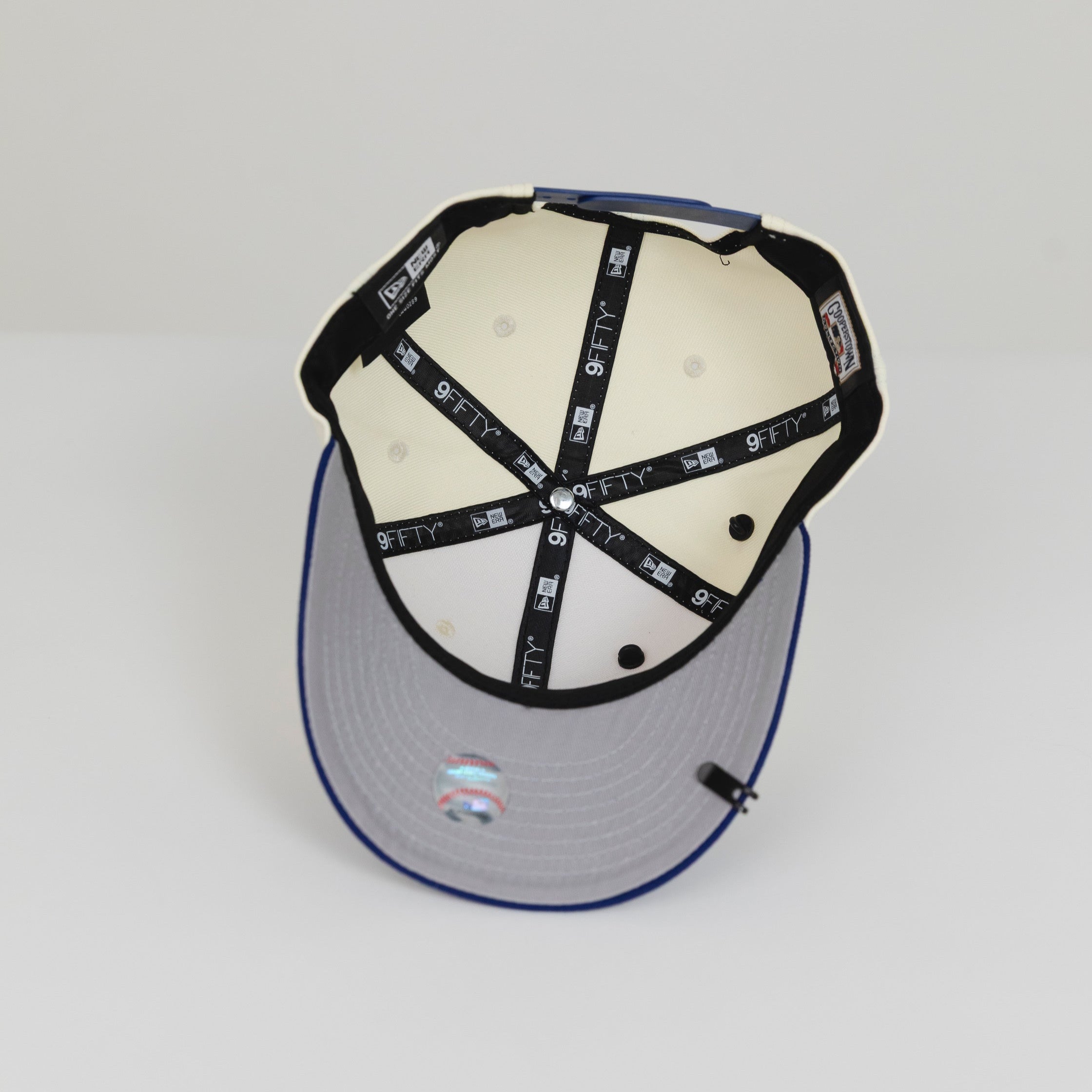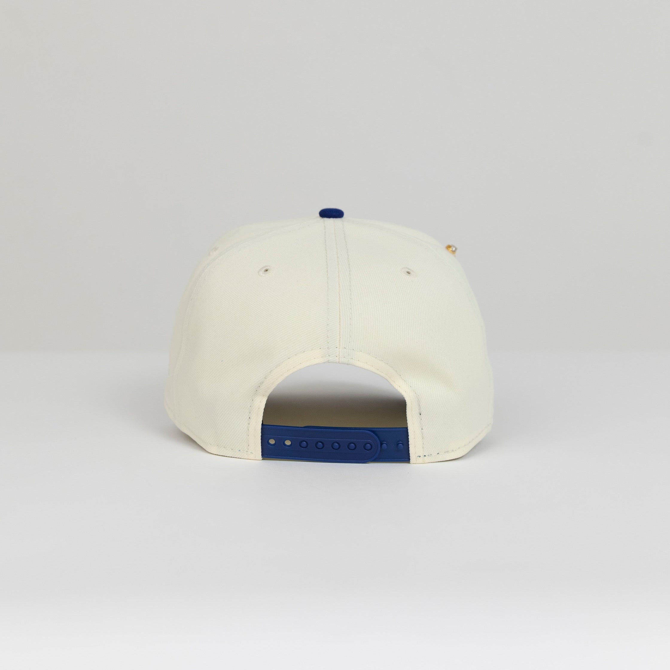 SNAPBACK DE LOS ANGELES DODGERS EXCLUSIVO DE NEW ERA 9FIFTY CHROME WHITE/MOCHA CON PARCHE DE LA 75TH WORLD SERIES