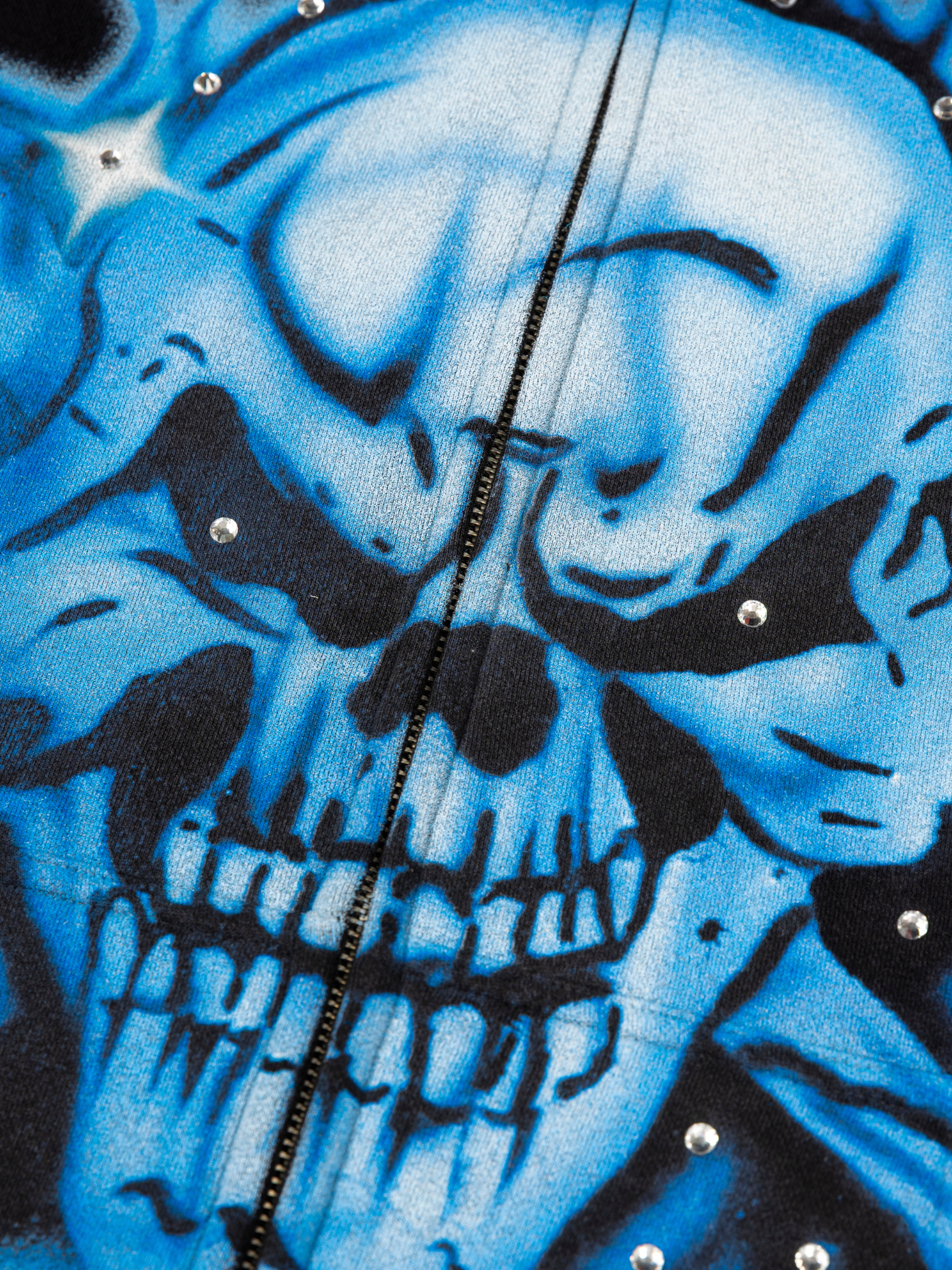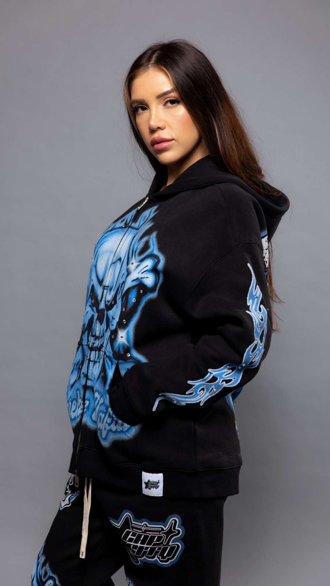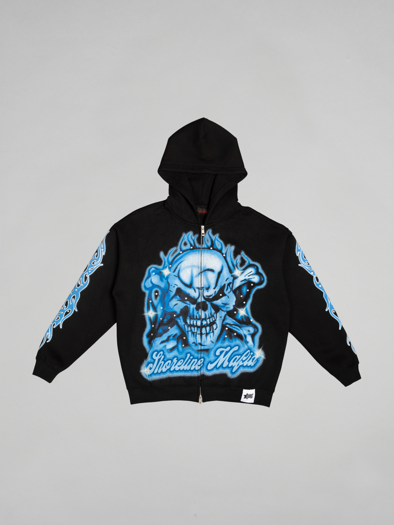 CAP CITY X SHORELINE MAFIA BLACK/BLUE AIR BRUSH ZIP UP HOODIE W/ RHINESTONES - UNISEX