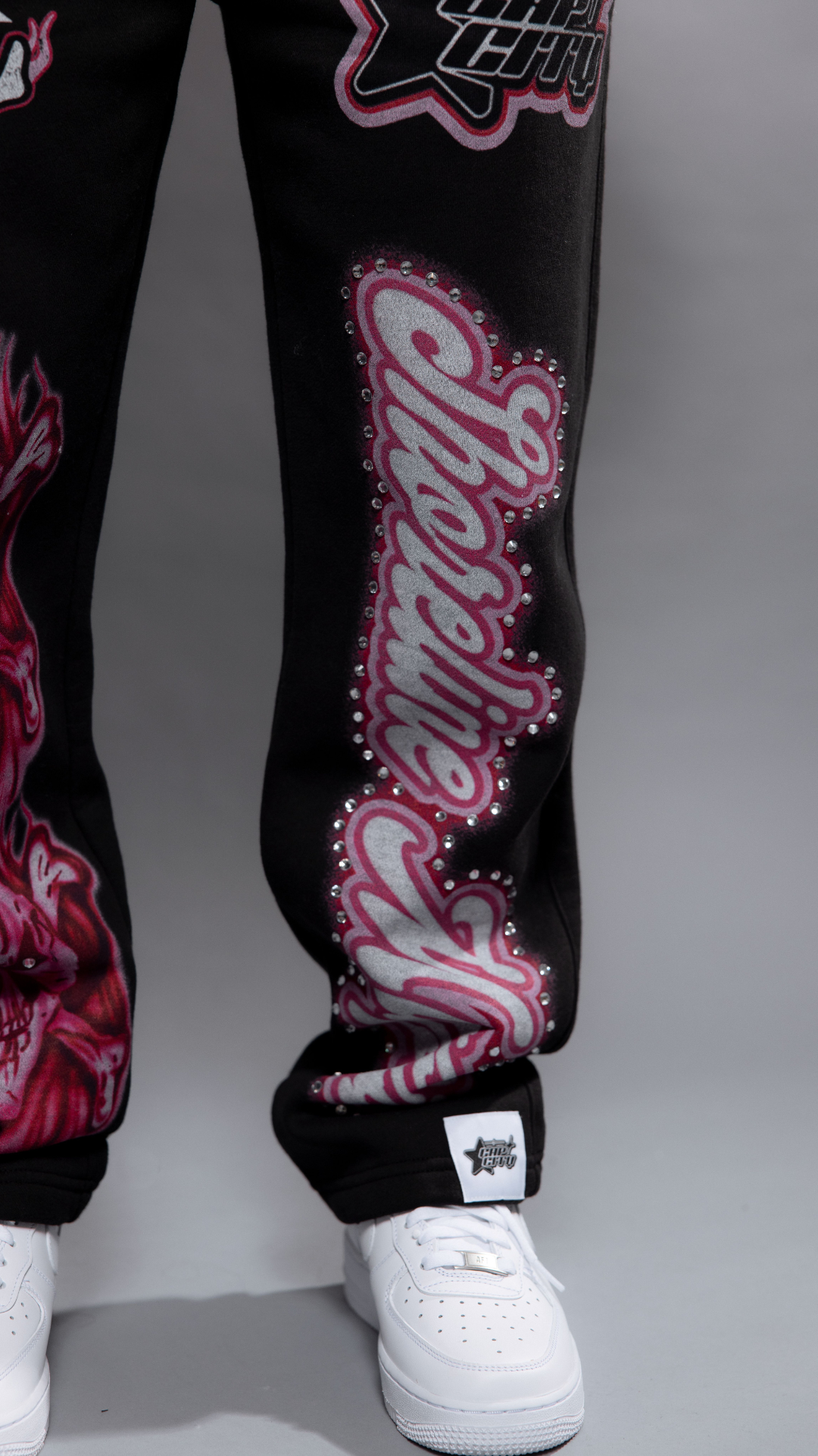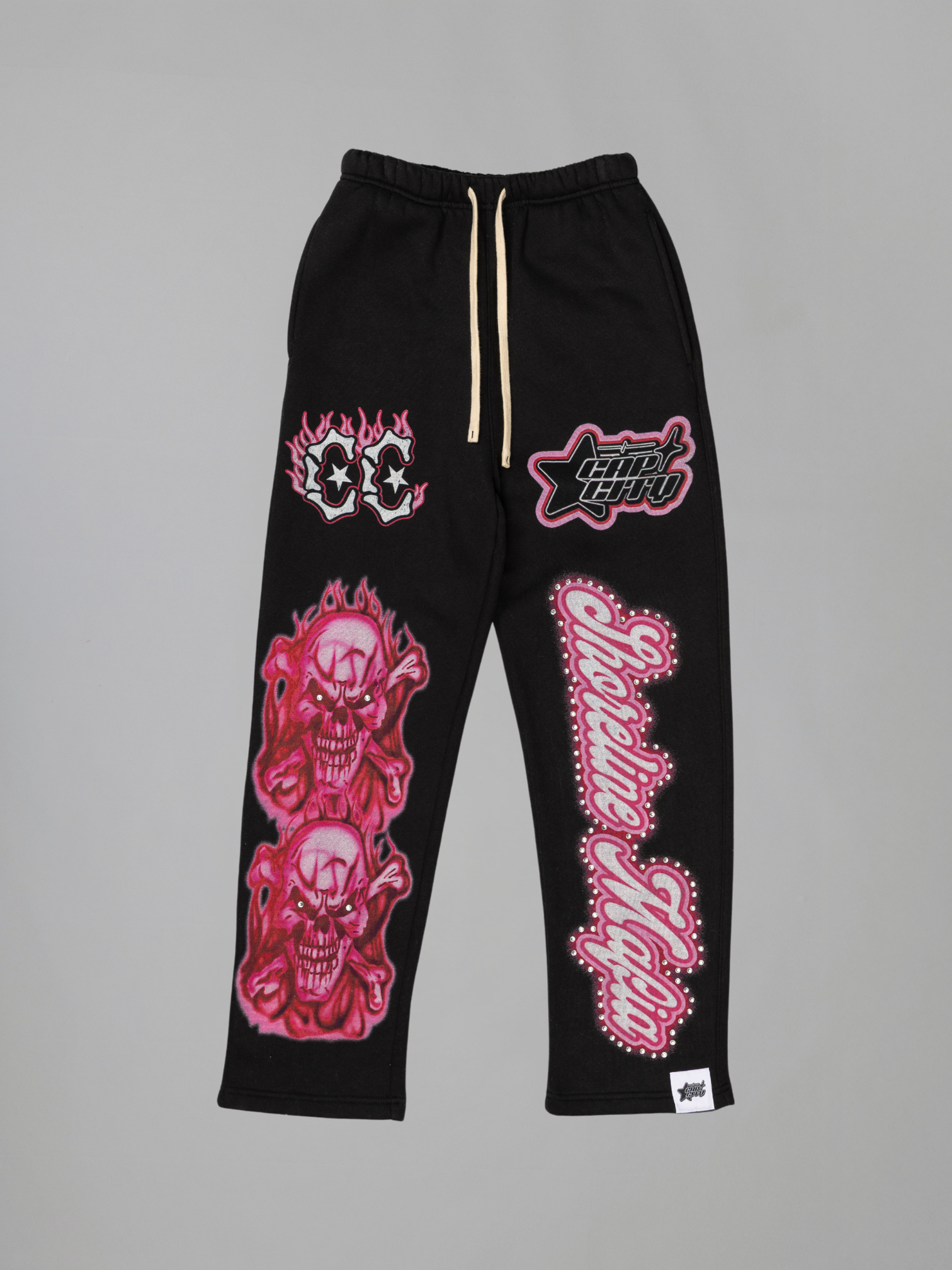 CAP CITY X SHORELINE MAFIA BLACK/PINK AIR BRUSH PANTS W/ RHINESTONES - UNISEX