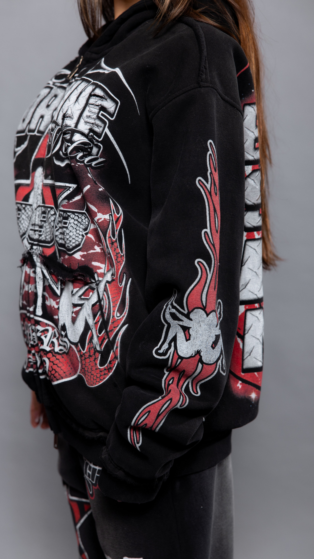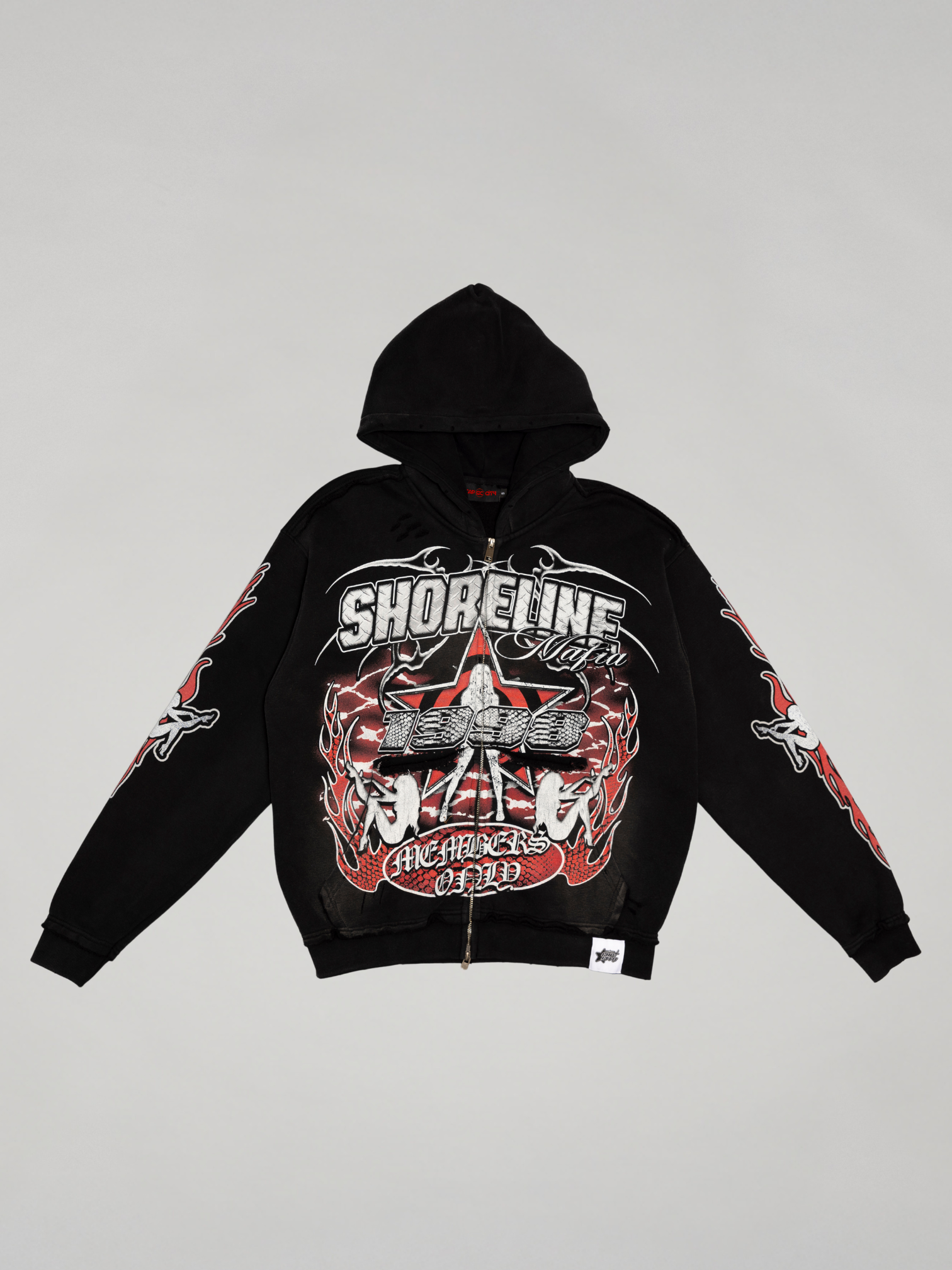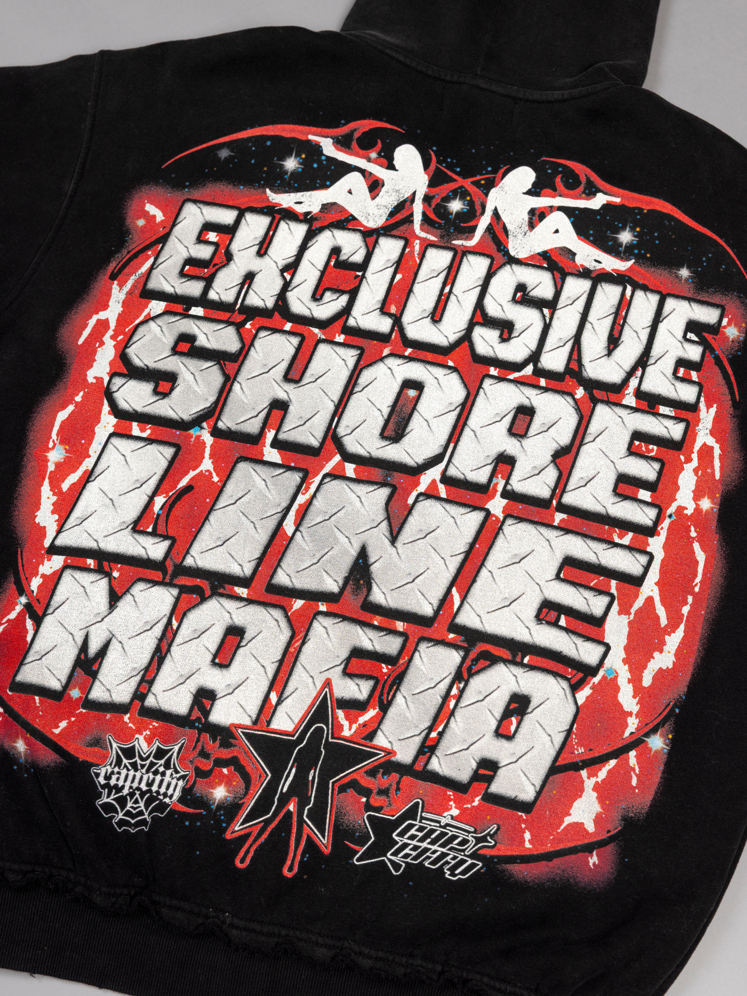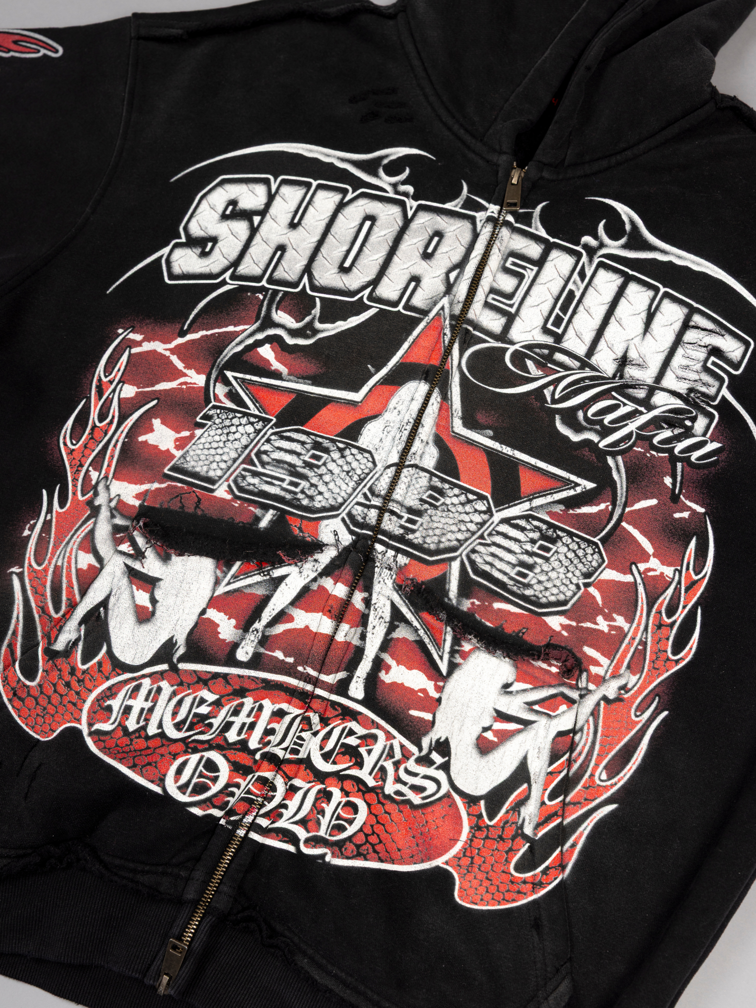 CAP CITY X SHORELINE MAFIA BLACK/RED MEMBERS ONLY ZIP UP HOODIE - UNISEX