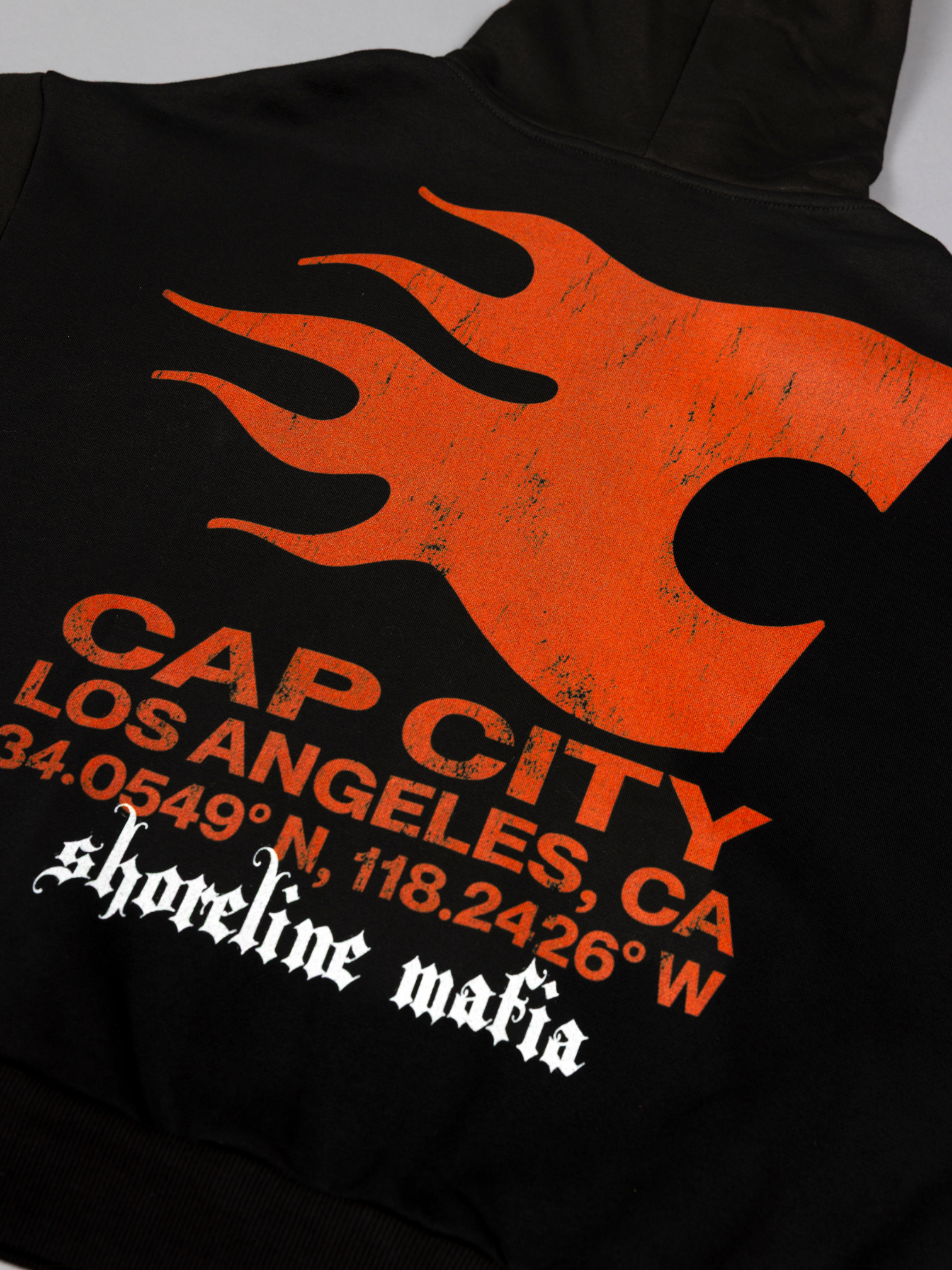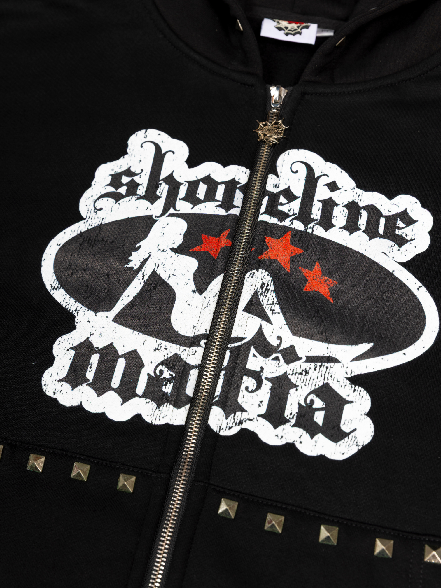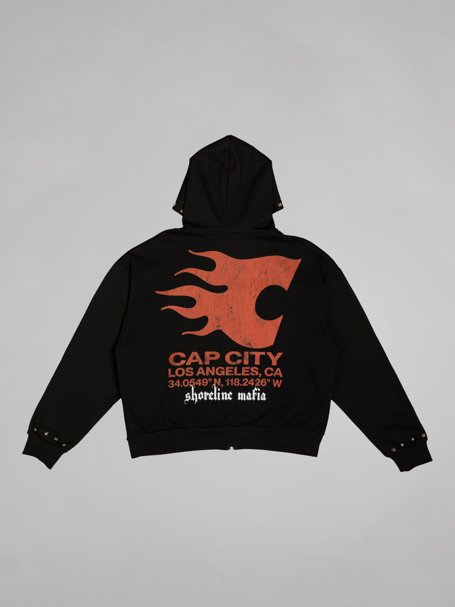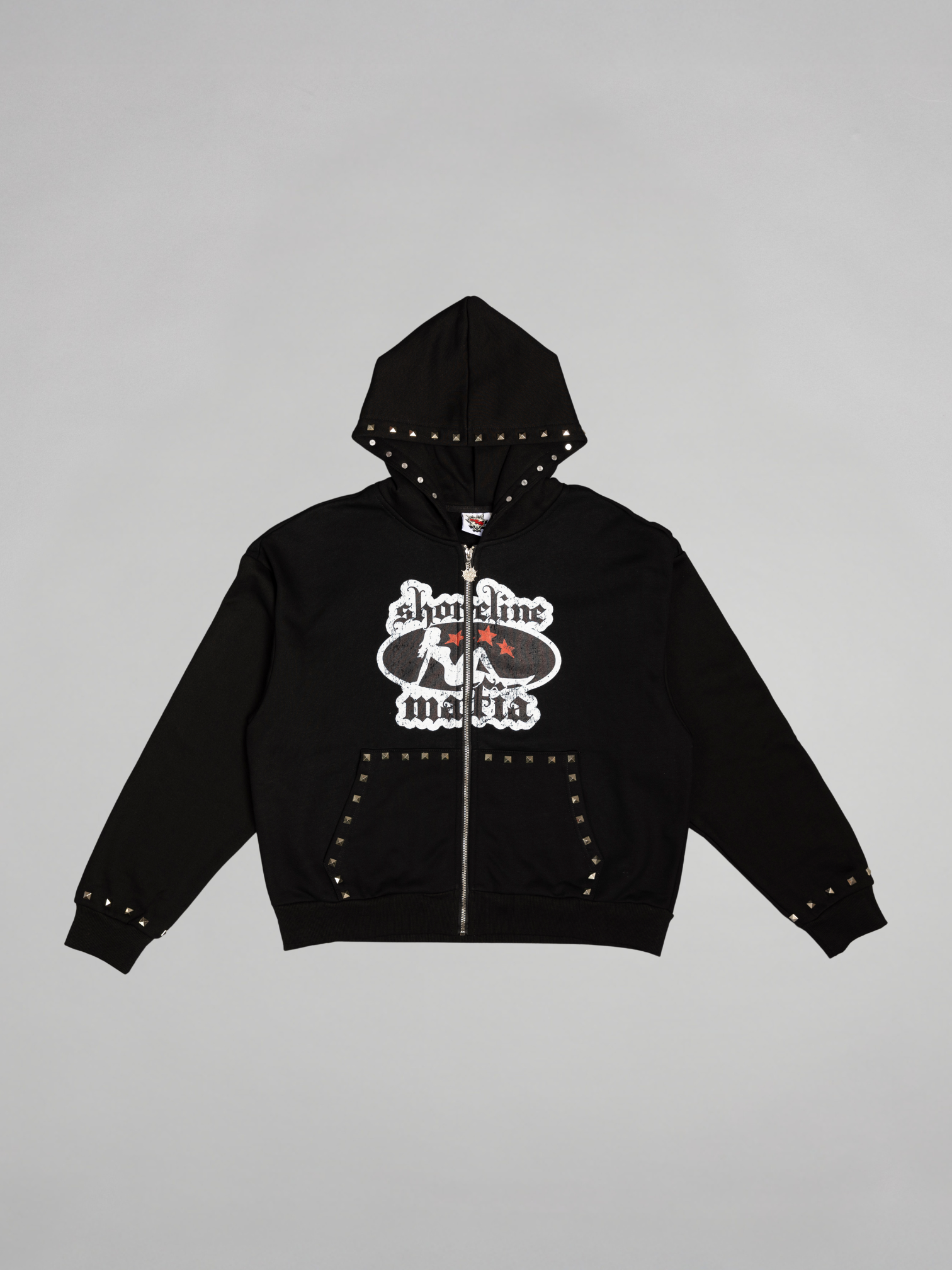 CAP CITY X SHORELINE MAFIA BLACK STUDDED ZIP UP HOODIE - UNISEX