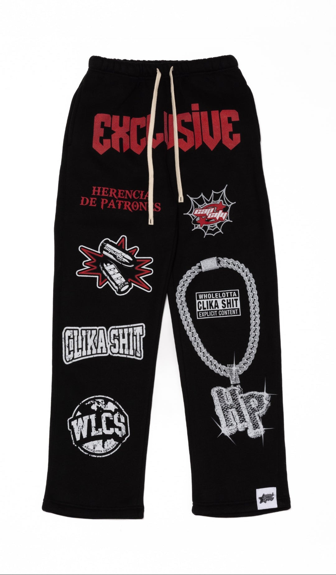 NEW* HERENCIA DE PATRONES x CAP CITY BLACK/RED "WHOLE LOTTA CLIKA SHI" SWEATS