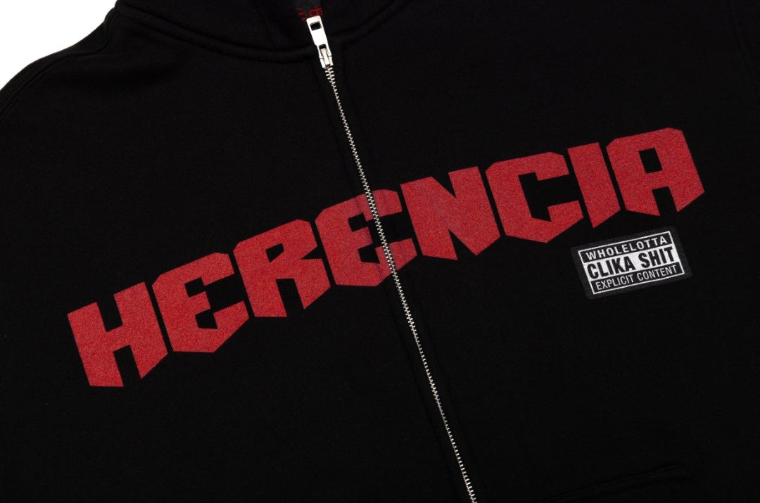 NEW* HERENCIA DE PATRONES x CAP CITY BLACK/RED "WHOLE LOTTA CLIKA SHI" ZIP UP HOODIE