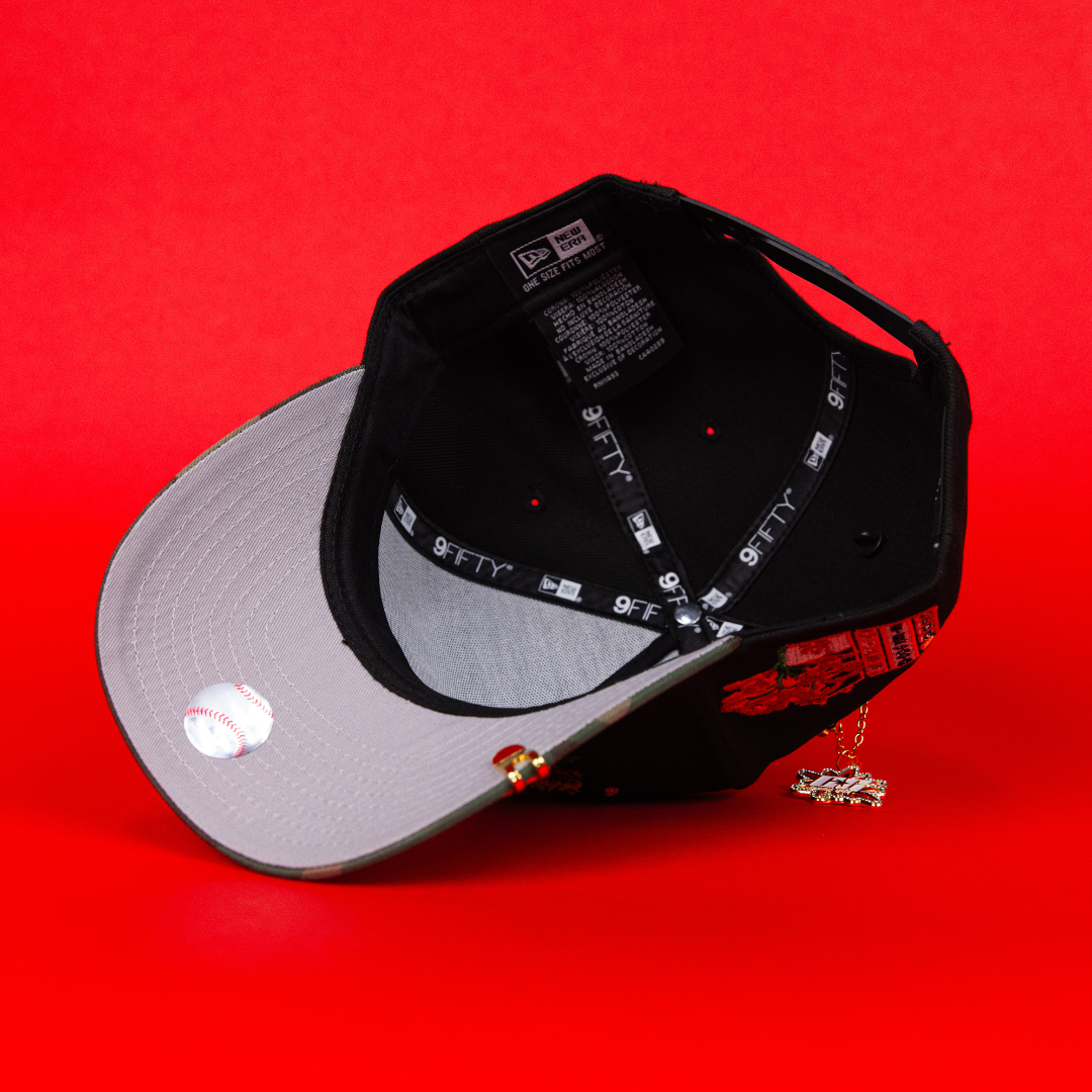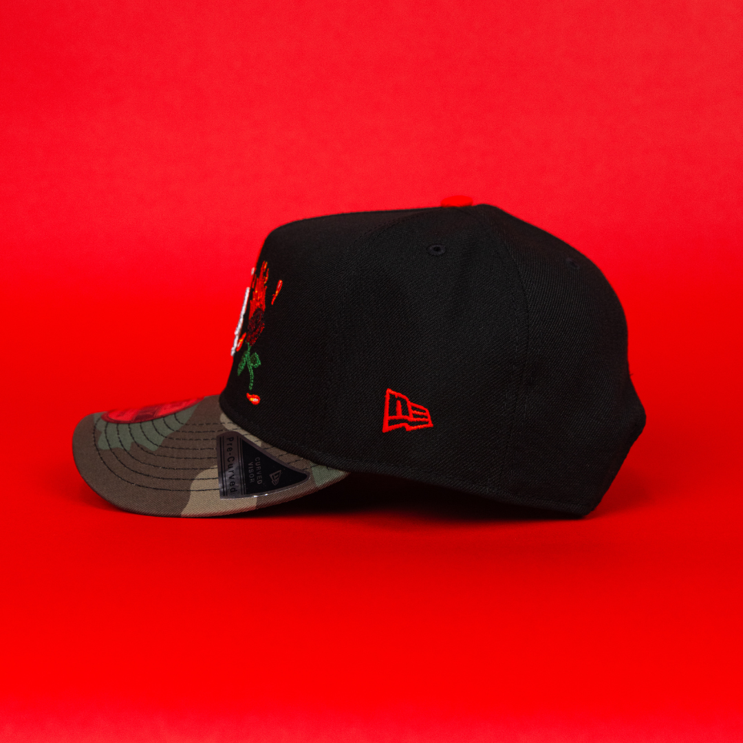 NEW ERA 9FIFTY A-FRAME BLACK/ CAMO LOS ANGELES DODGERS SNAPBACK W/ ROSES + TOKYO SERIES SIDE PATCH