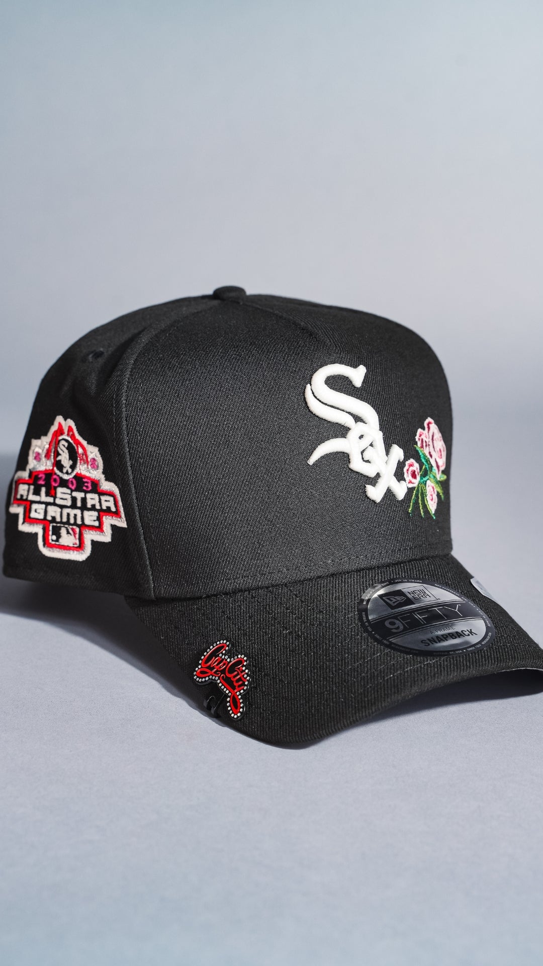NEW ERA 9FIFTY A-FRAME BLACK CHICAGO WHITE SOX SNAPBACK W/ ROSES + 2003 ALL STAR GAME SIDE PATCH