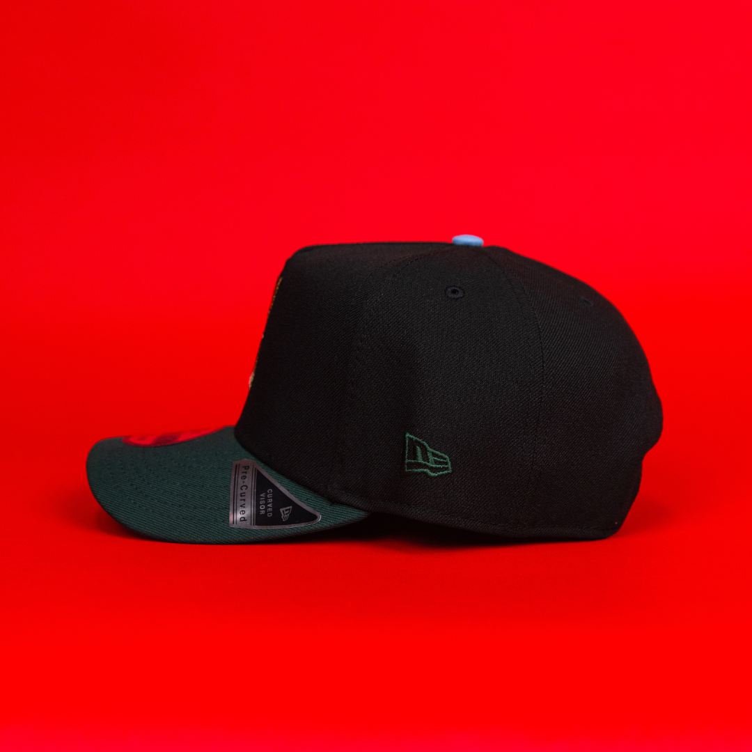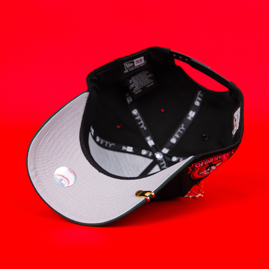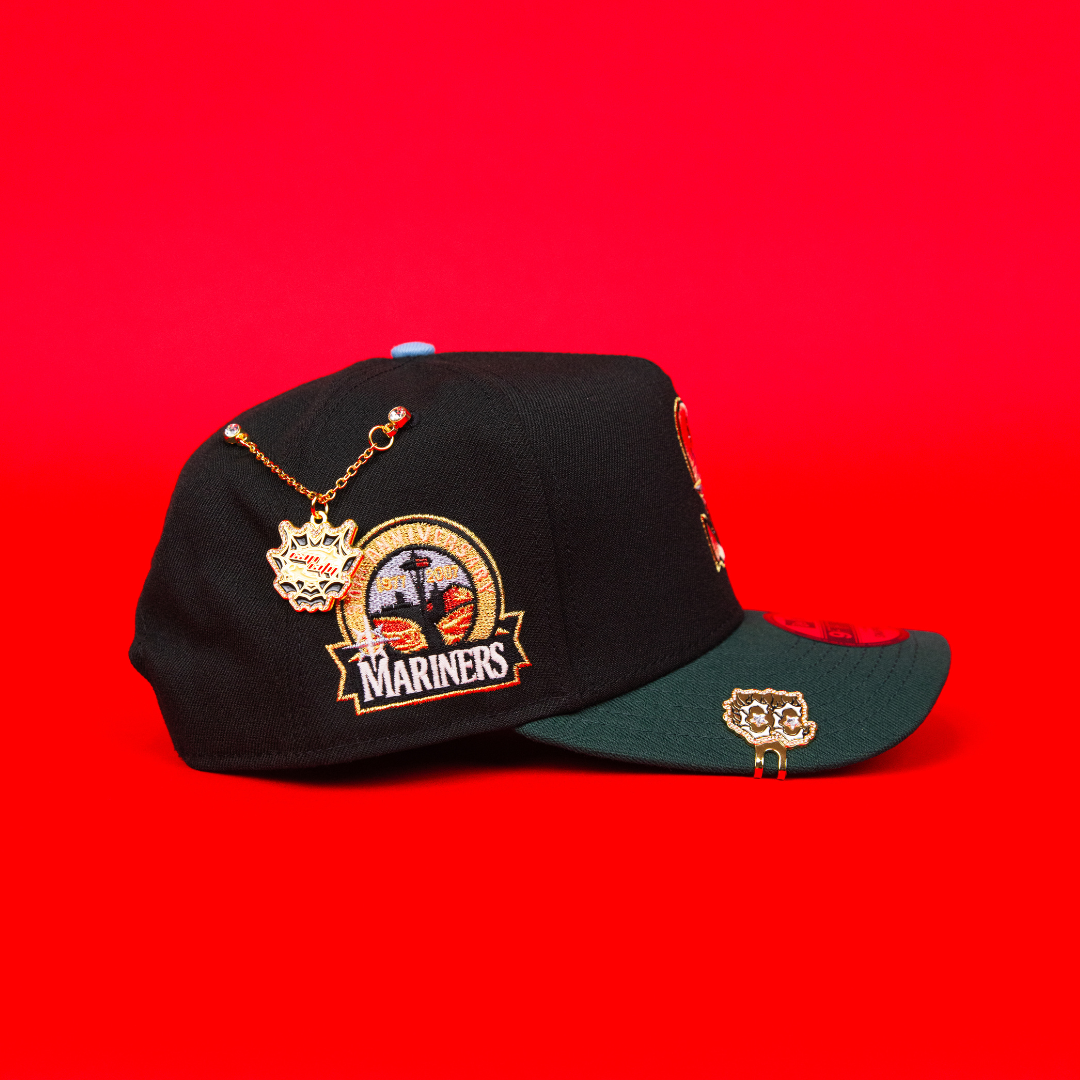 NEW ERA 9FIFTY A-FRAME BLACK/ FOREST GREEN SEATTLE MARINERS SNAPBACK W/ ANNIVERSARY SIDE PATCH