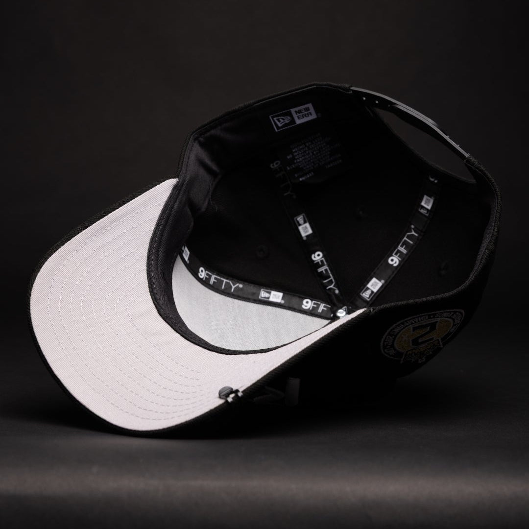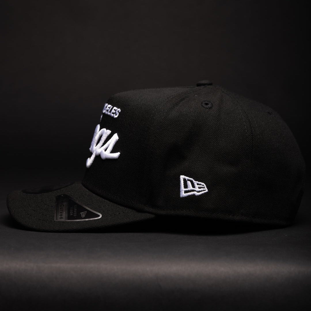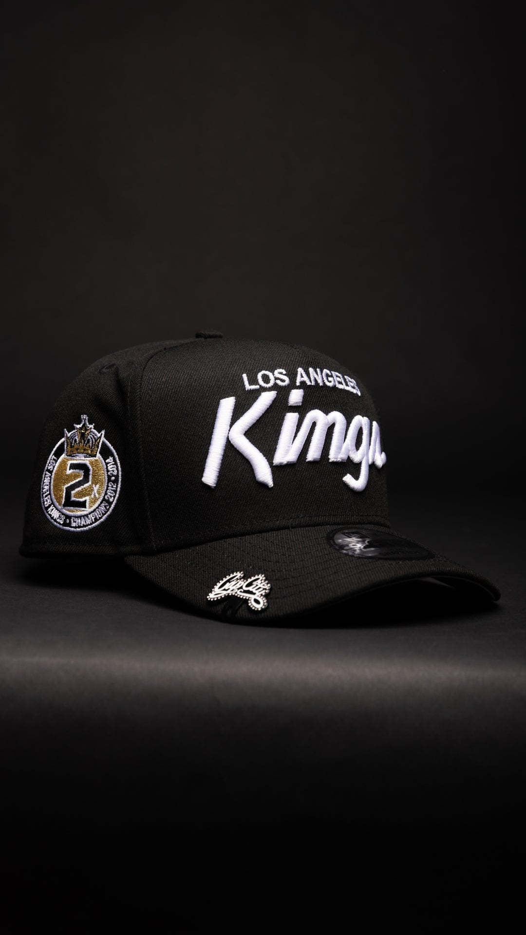 NEW ERA 9FIFTY A-FRAME BLACK LOS ANGELES KINGS SCRIPT SNAPBACK W/ 2012 NHL CHAMPIONS SIDE PATCH