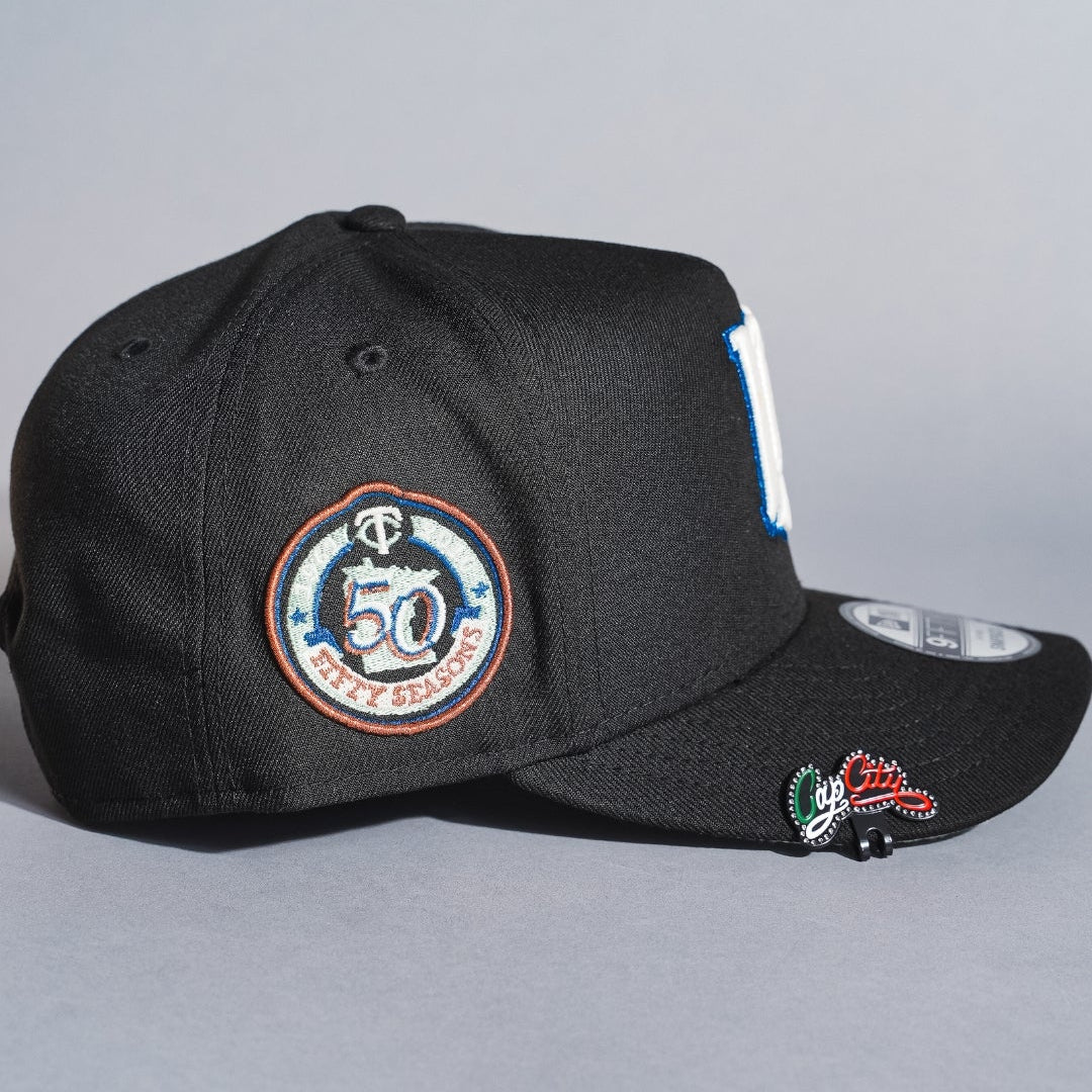 NEW ERA 9FIFTY A-FRAME BLACK MINNESOTA TWINS SNAPBACK W/ 50TH ANNIVERSARY SIDE PATCH