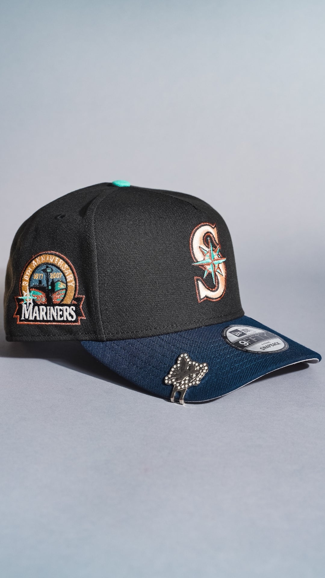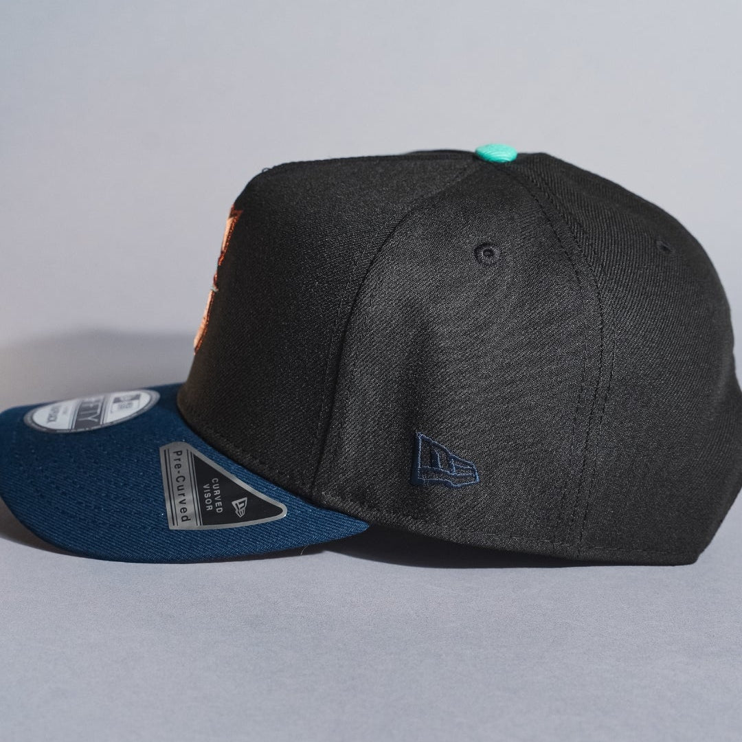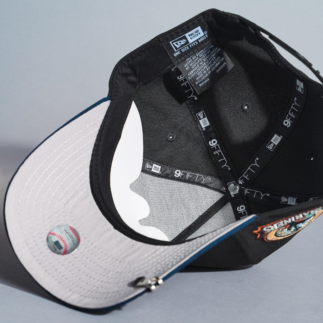 NEW ERA 9FIFTY A-FRAME BLACK/NAVY SEATTLE MARINERS SNAPBACK W/ ANNIVERSARY SIDE PATCH
