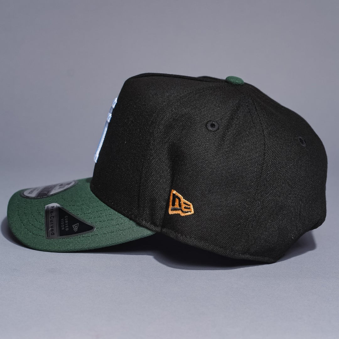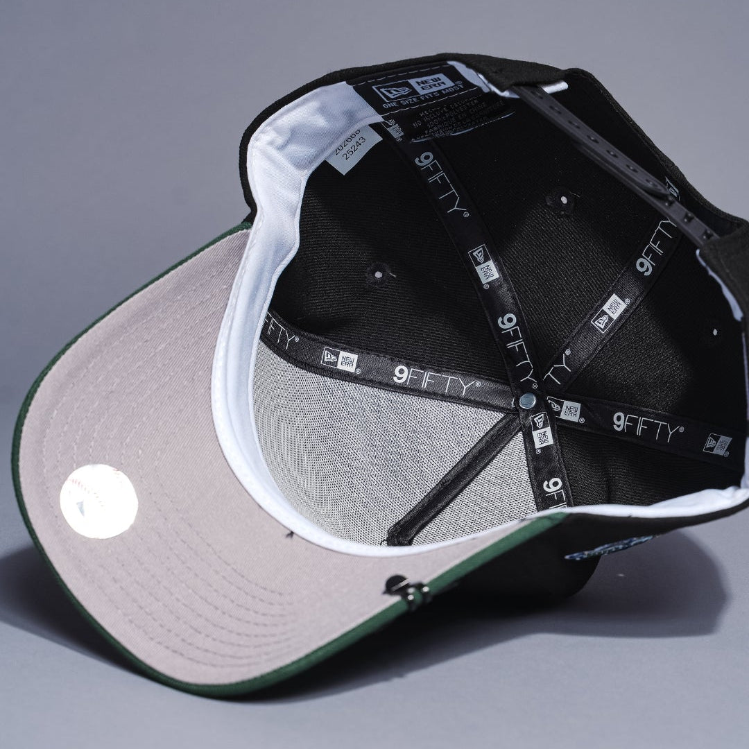 NEW ERA 9FIFTY A-FRAME BLACK/GREEN UPSIDE DOWN LOS ANGELES DODGERS SNAPBACK W/ 40TH ANNIVERSARY SIDE PATCH