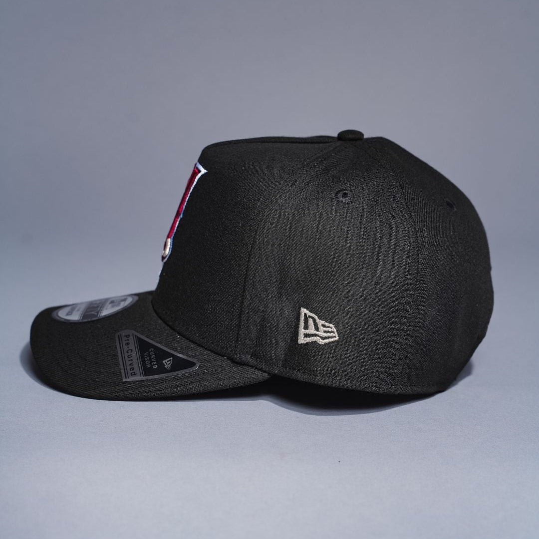 NEW ERA 9FIFTY A-FRAME BLACK UPSIDE DOWN ANAHEIM ANGELS SNAPBACK W/ 50TH ANNIVERSARY SIDE PATCH