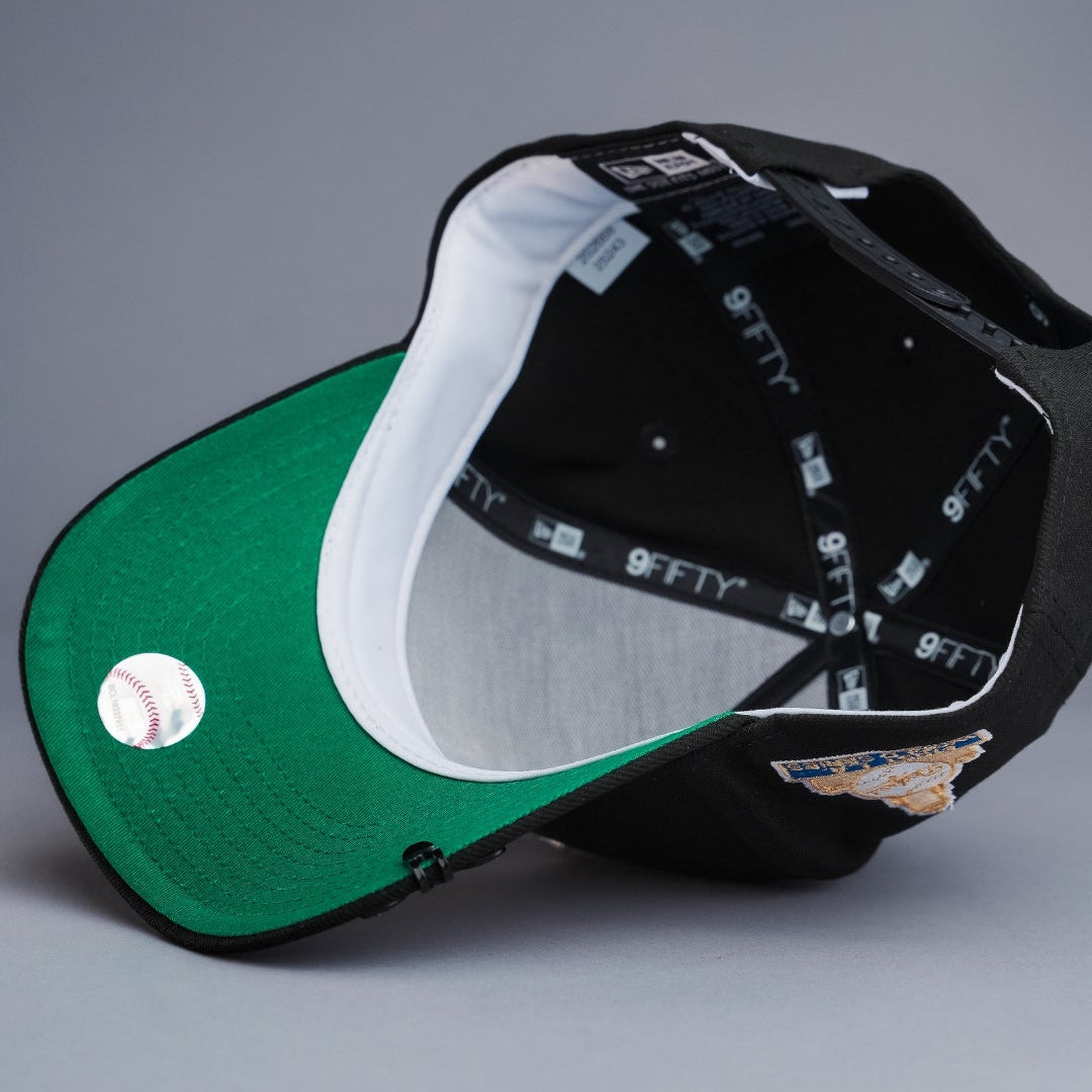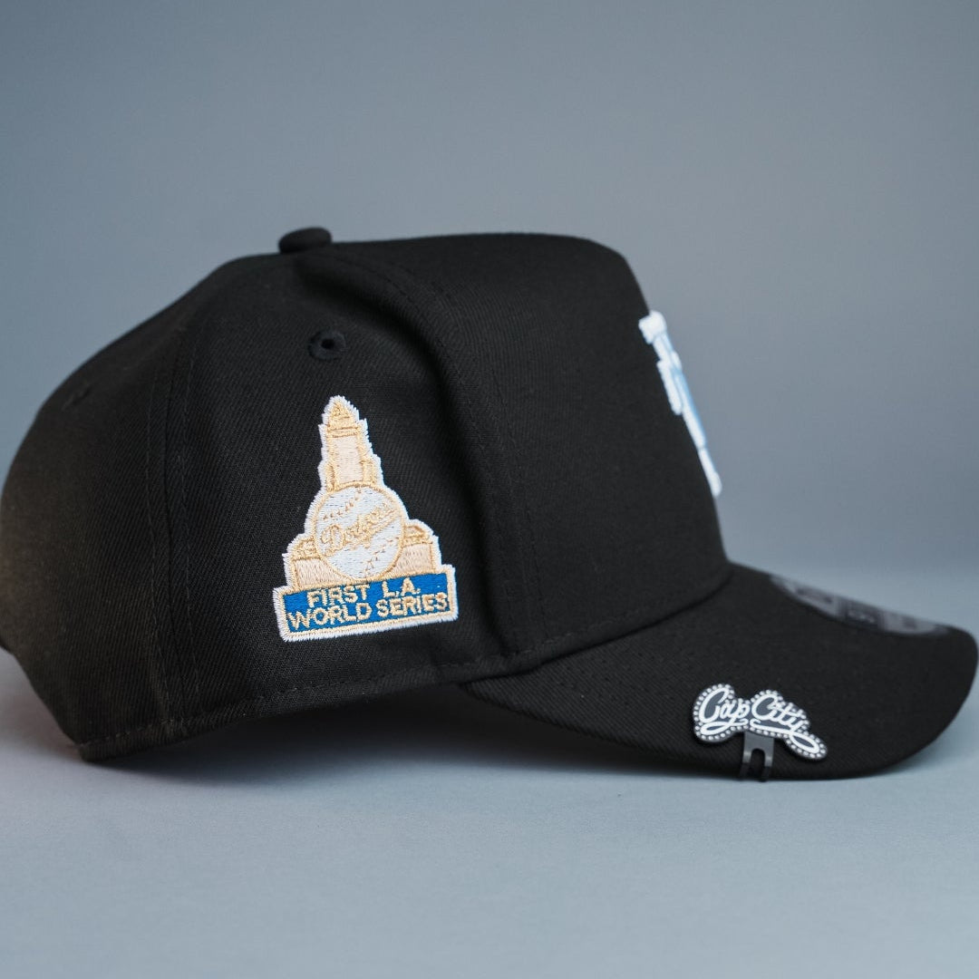 NEW ERA 9FIFTY A-FRAME BLACK UPSIDE DOWN LOS ANGELES DODGERS SNAPBACK W/ FIRST WORLD SERIES SIDE PATCH