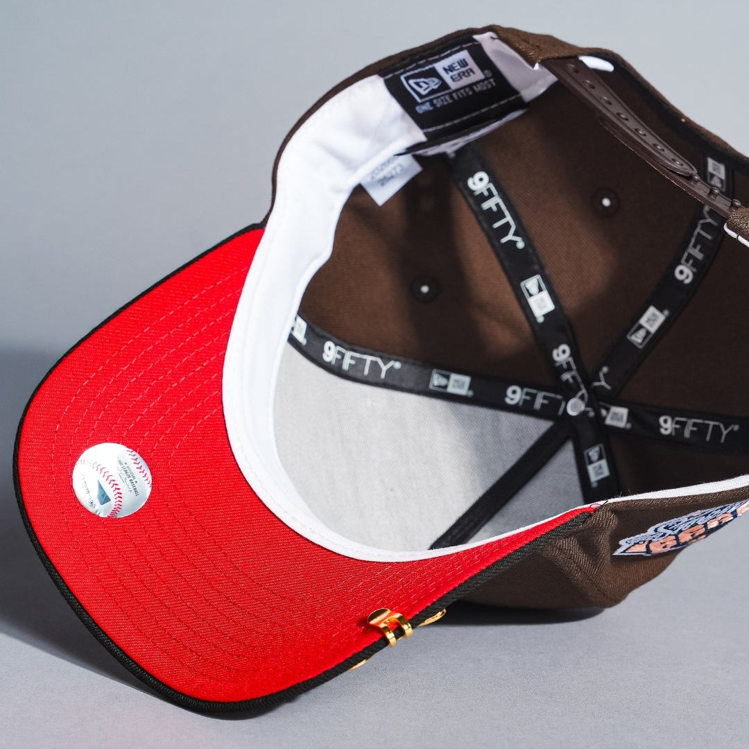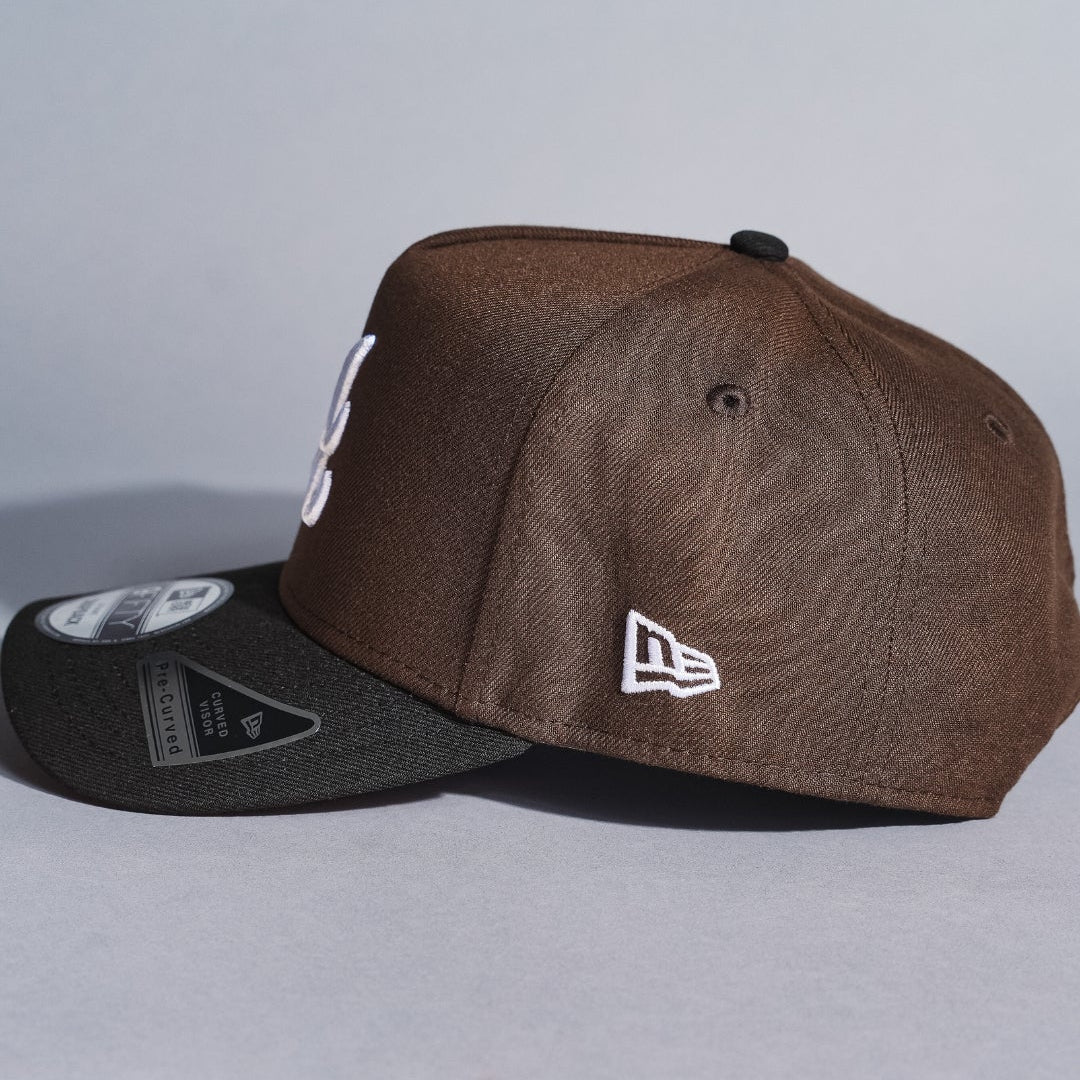NEW ERA 9FIFTY A-FRAME BROWN/BLACK ATLANTA BRAVES SNAPBACK W/ 1999 WORLD SERIES SIDE PATCH