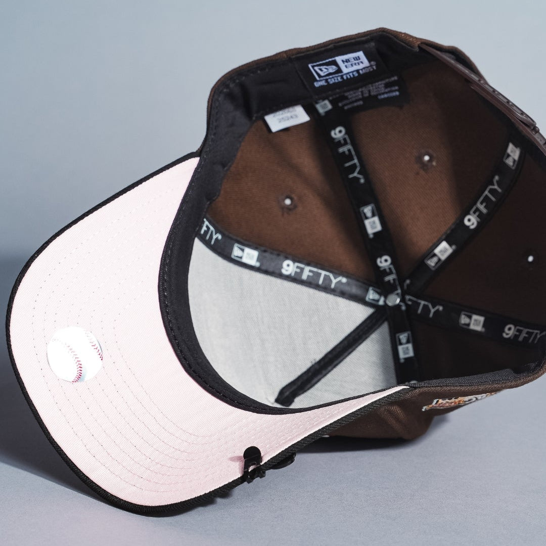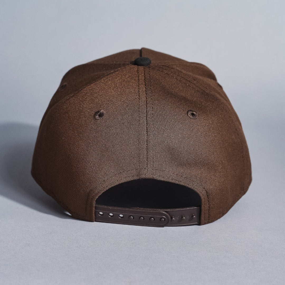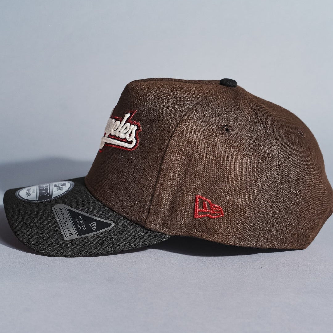 NEW ERA 9FIFTY A-FRAME BROWN/BLACK LOS ANGELES DODGERS SCRIPT SNAPBACK W/ 40TH ANNIVERSARY SIDE PATCH
