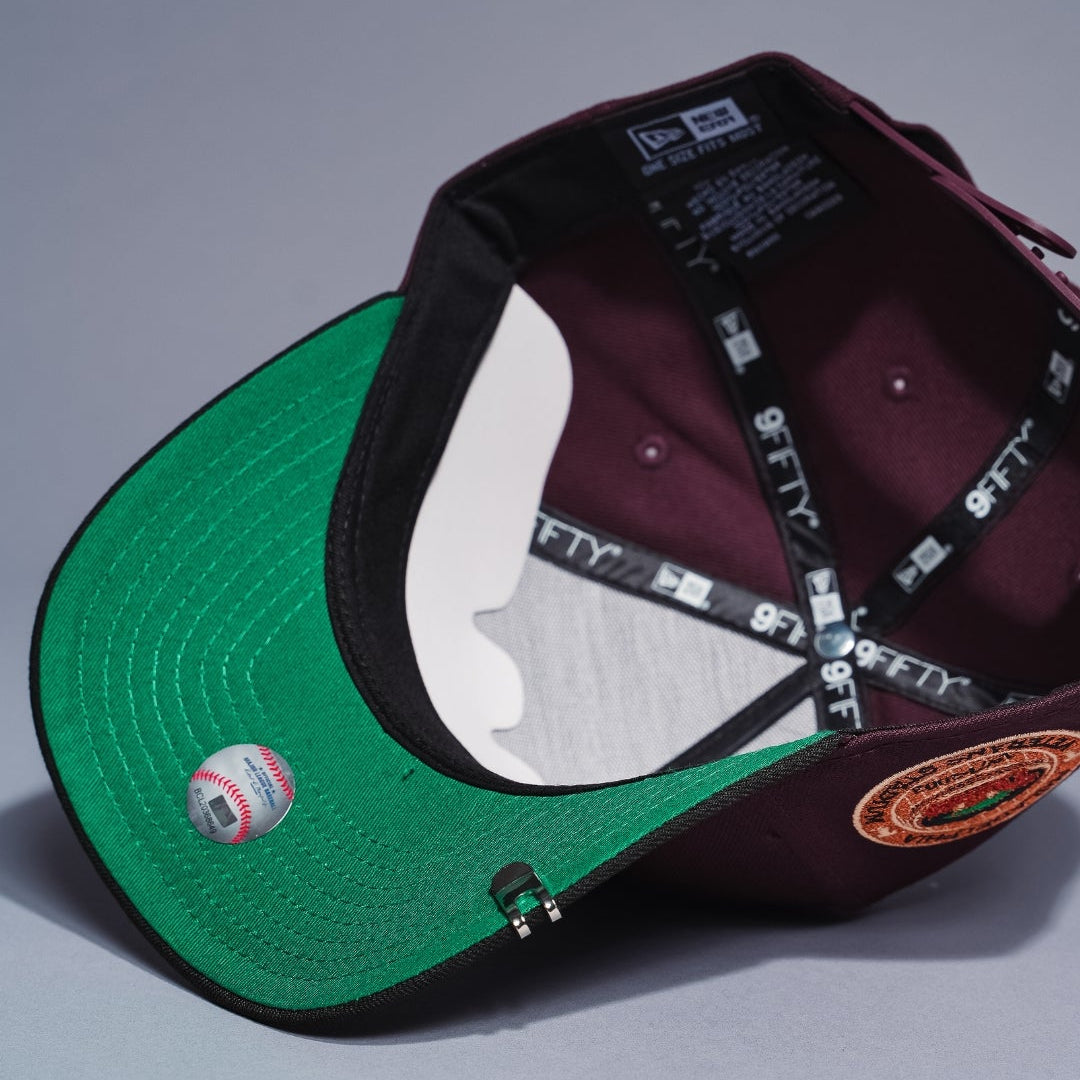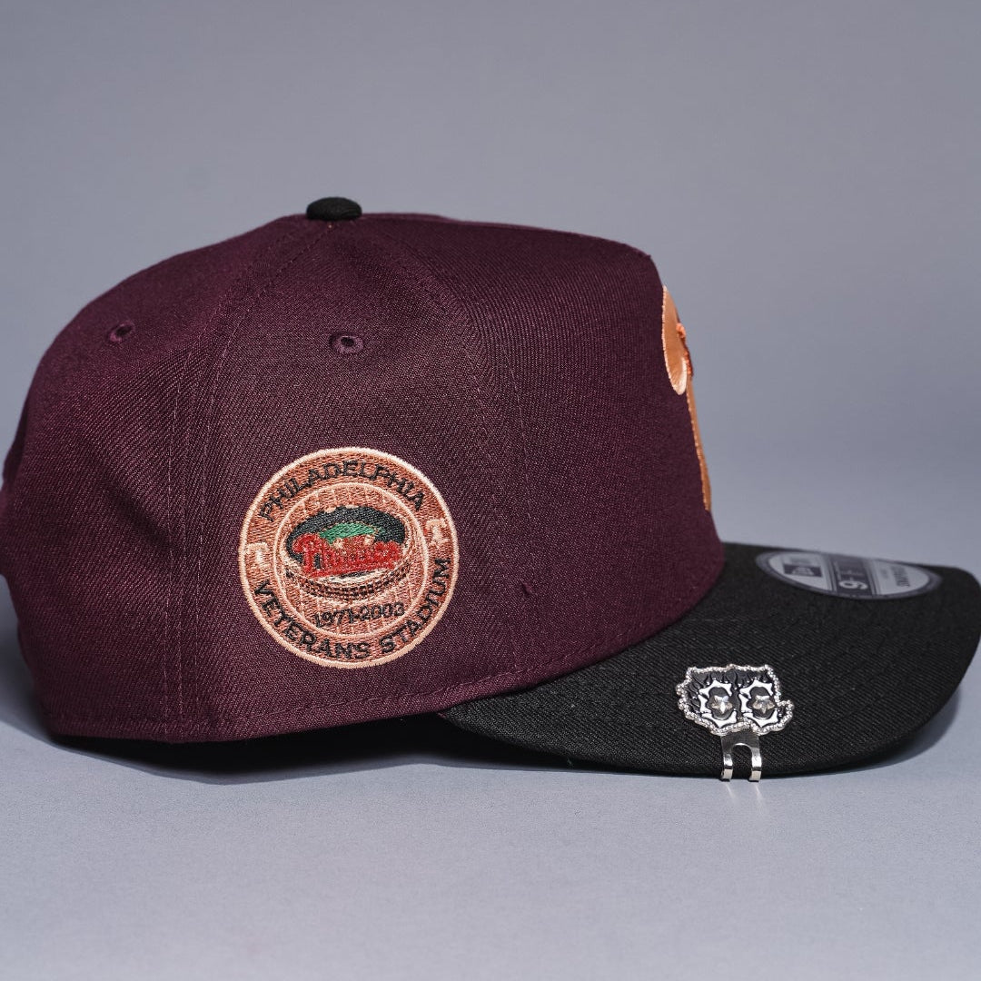 NEW ERA 9FIFTY A-FRAME BURGUNDY/BLACK PHILADELPHIA PHILLIES SNAPBACK W/ THREE RIVERS STADIUM SIDE PATCH