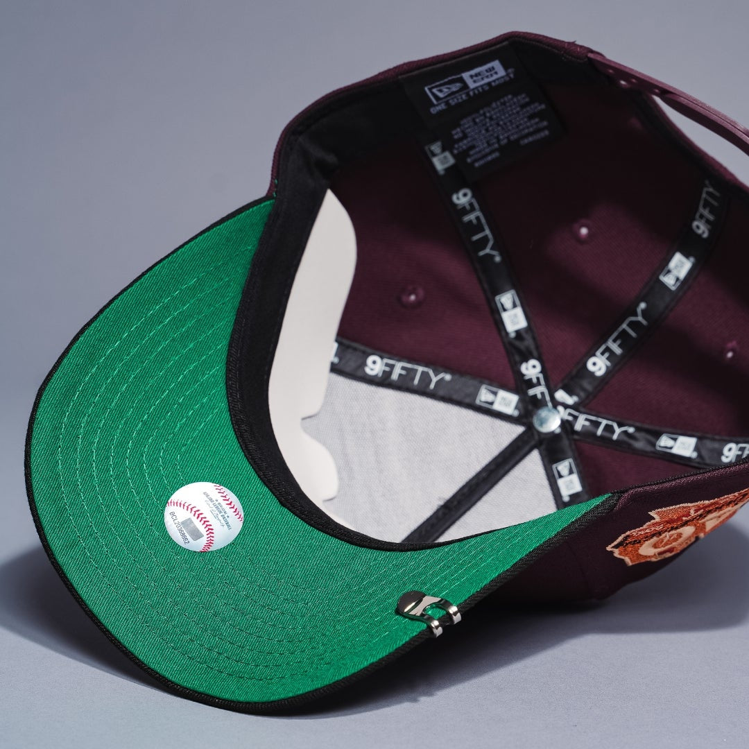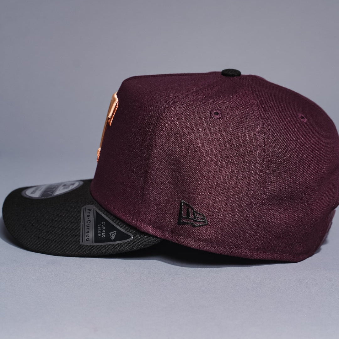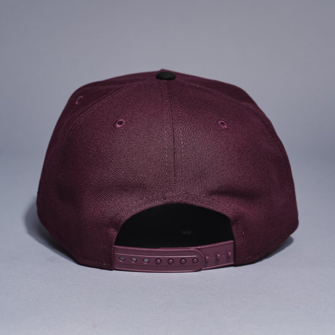 NEW ERA 9FIFTY A-FRAME BURGUNDY/BLACK TEXAS RANGERS SNAPBACK W/ 40TH ANNIVERSARY SIDE PATCH
