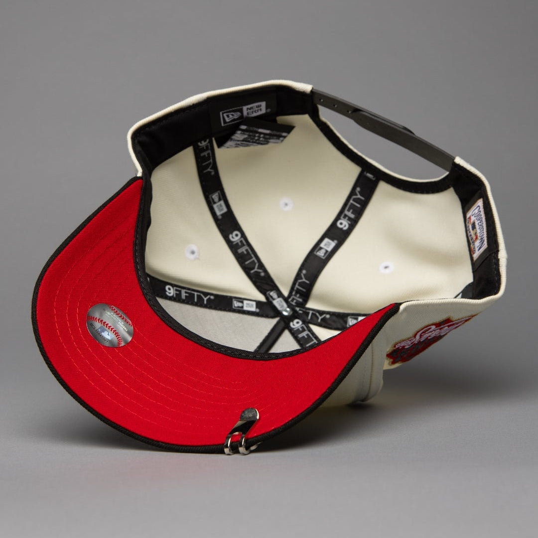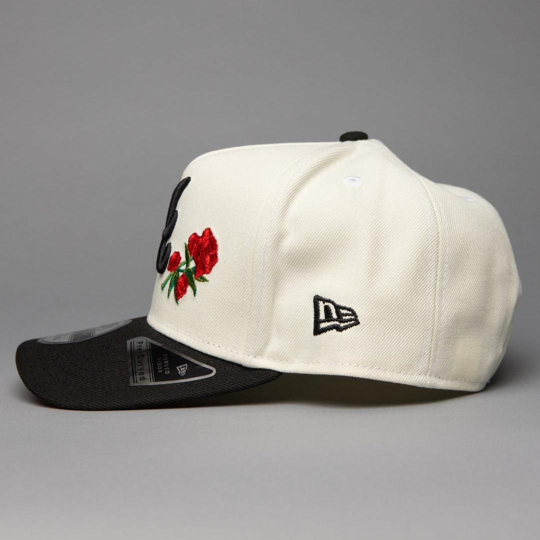 NEW ERA 9FIFTY A-FRAME CHROME/BLACK ATLANTA BRAVES SNAPBACK W/ RED ROSES + 1999 WORLD SERIES SIDE PATCH