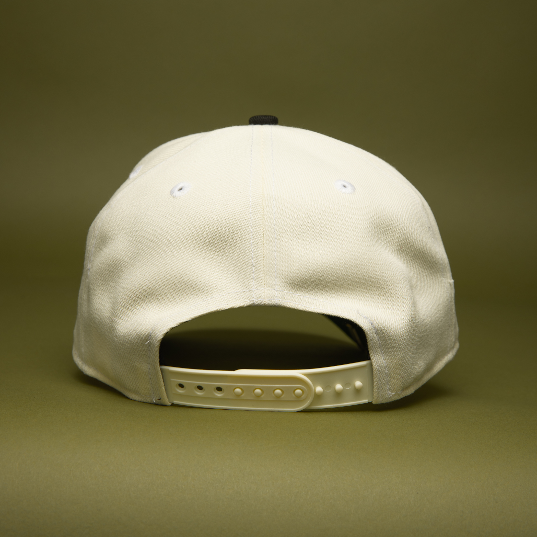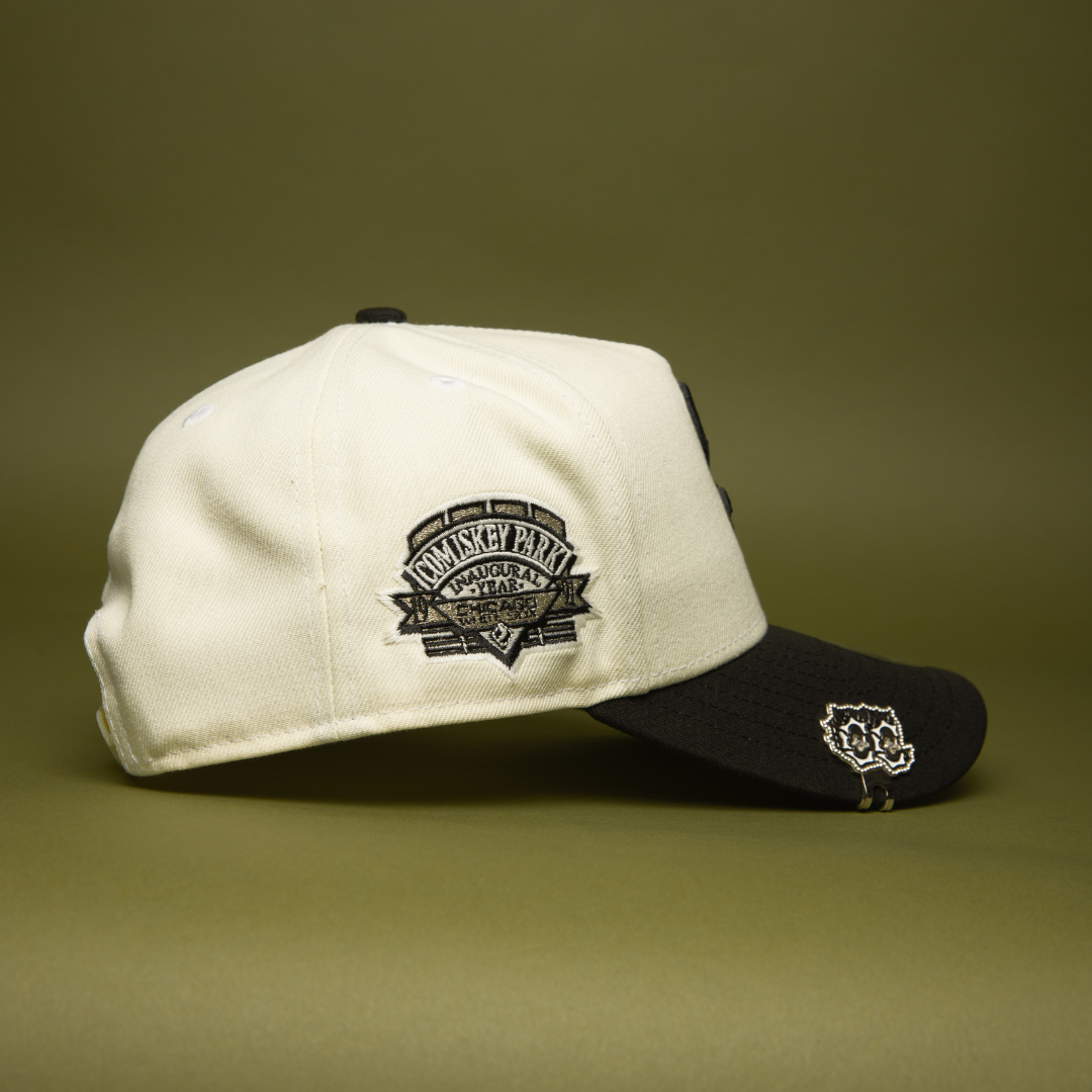 NEW ERA 9FIFTY A-FRAME CHROME/BLACK CHICAGO WHITE SOX SNAPBACK W/ COMISKEY PARK SIDE PATCH
