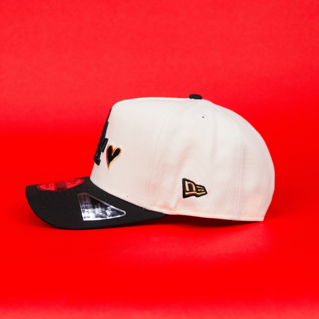 NEW ERA 9FIFTY A-FRAME CHROME/ BLACK LOS ANGELES DODGERS SNAPBACK W/ HEART + 60TH ANNIVERSARY SIDE PATCH