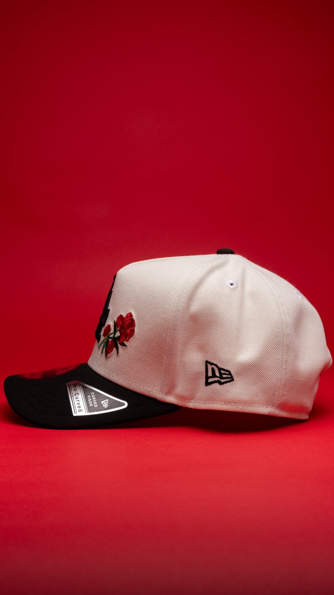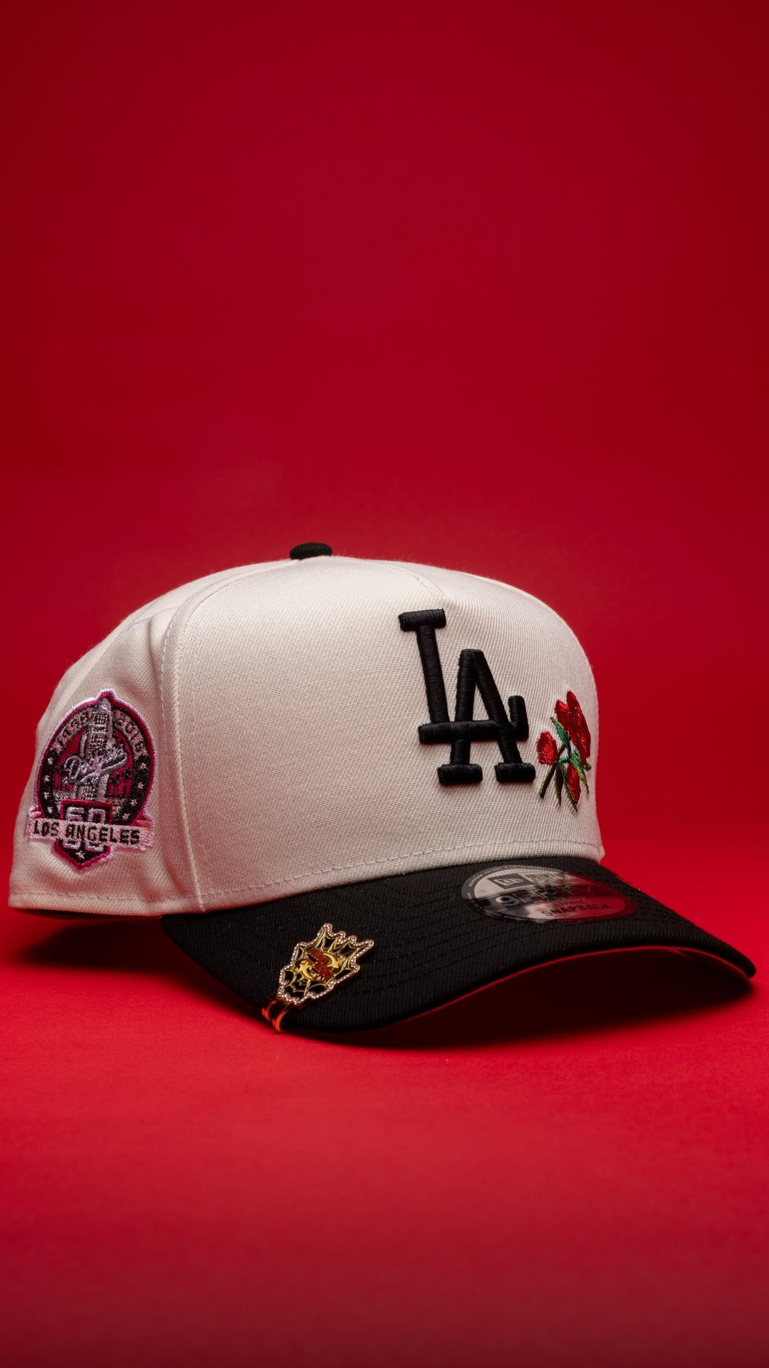 NEW ERA 9FIFTY A-FRAME CHROME/BLACK LOS ANGELES DODGERS SNAPBACK W/ RED ROSES + 60TH ANNIVERSARY SIDE PATCH