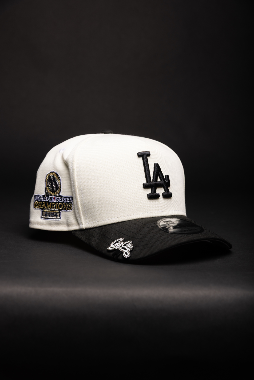 NEW ERA 9FIFTY A-FRAME CHROME/BLACK LOS ANGELES DODGERS W/ WORLD SERIES CHAMPIONS SIDE PATCH
